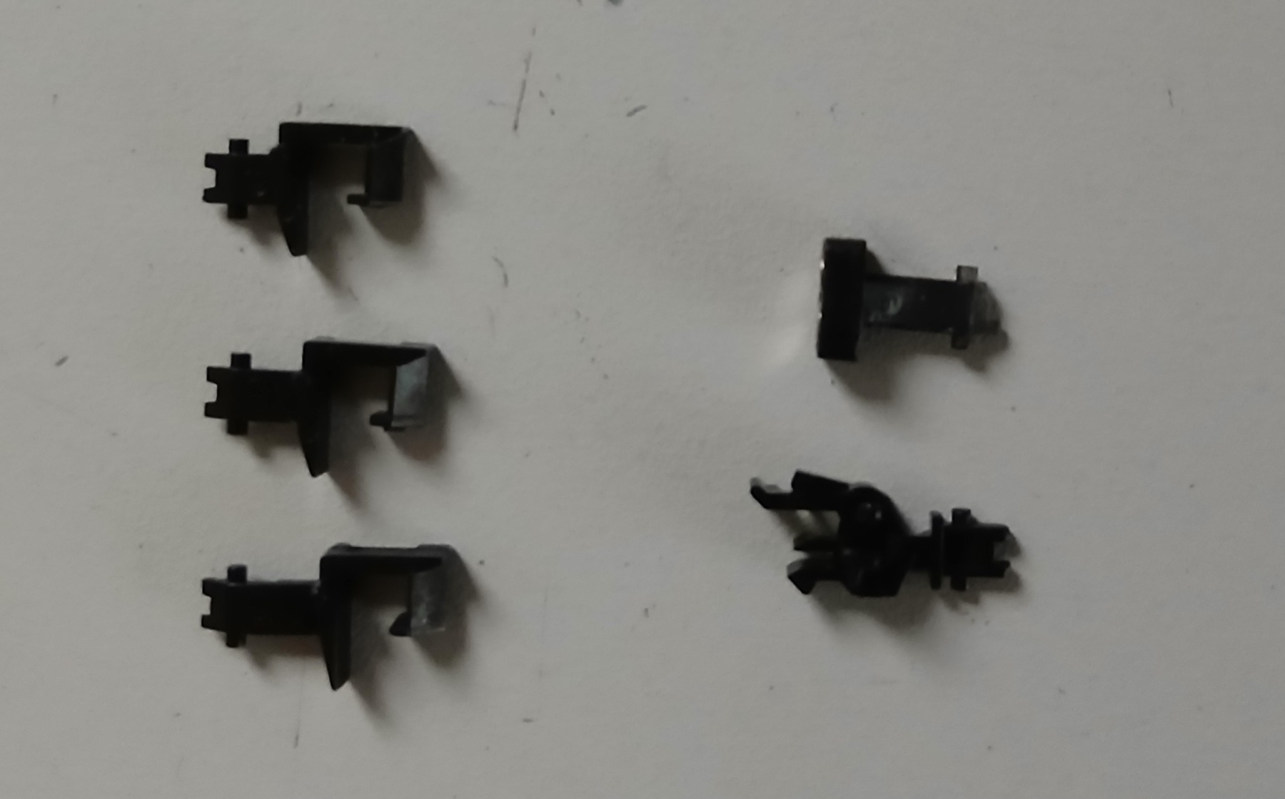 Ik gebruik de standaard haakkoppeling voor locs en begin/eindrijtuigen om te kunnen afkoppelen. Voor rijtuigen van vaste stammen die onderling tijdens het rijbedrijf niet van elkaar worden gescheiden, gebruik ik magneetkoppelingen die korter koppelen dan de Fleischmann kortkoppelingen. Die laatste gebruik vooral bij goederenwagens. Ik gebruik echter ook versterkingsrijtuigen (zoals Plan E-RD, ICR-BKD en de twee hierboven beschreven bagagewagens). Voor deze rijtuigen gebruik ik de standaardhaakkoppelingen om te kunnen af- en aan te koppelen. Eén van de twee koppelingen heeft daarbij een kortere schacht zodat er wel kort gekoppeld kan worden. De afstand is nauwelijks meer dan de magneetkoppelingen. Voorwaarde is wel dat minstens één van de twee betrokken rijtuigen een kortkoppelmechaniek heeft. Dit blijkt goed te werken. Wat niet, of onvoldoende werkt is ontkoppelen van locs/rijtuigen die voorzien zijn van de Flm kortkoppelingen met de elektrische ontkoppelrail.