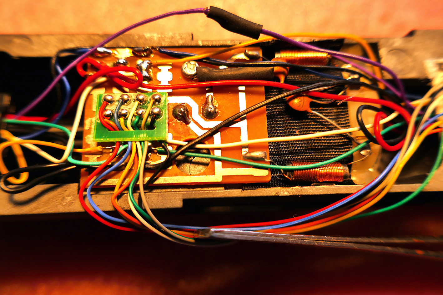 Ik heb het bestaande printje in de loc verwijderd en alles direct bedraad.