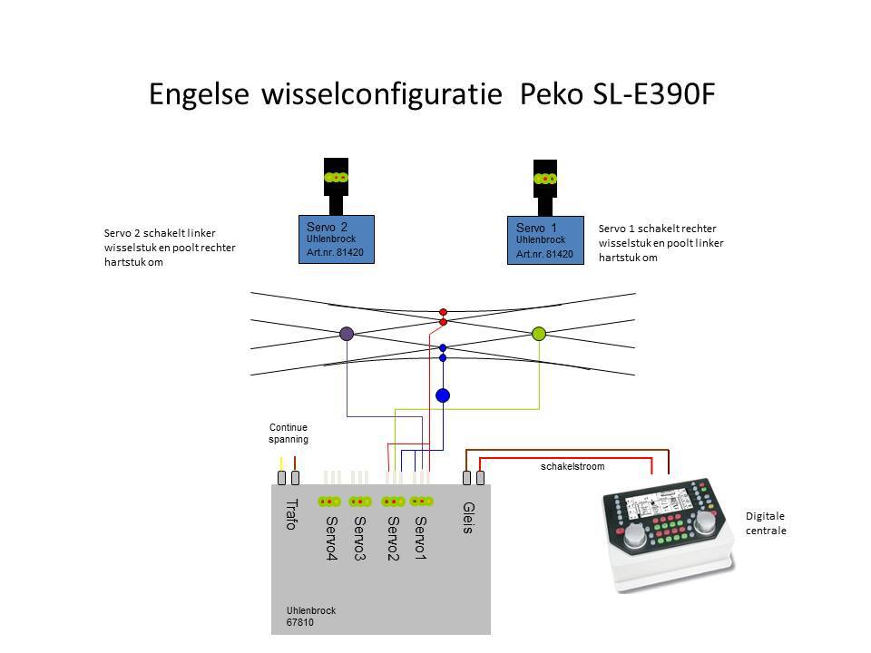 Aansluitschema voor een engelse wissel van Peko t.w. SL-E390K