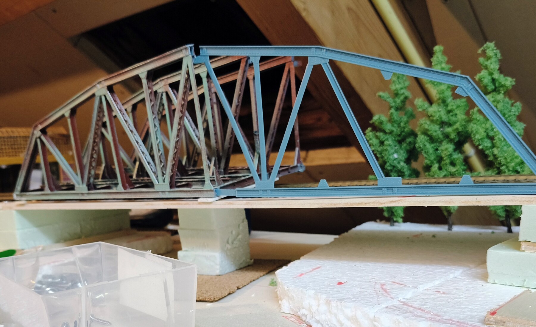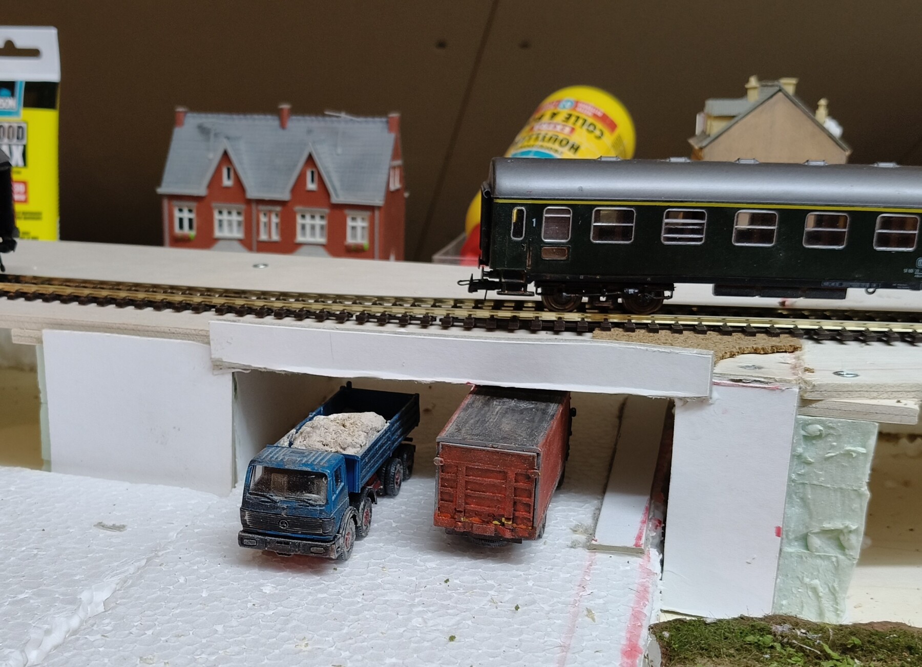 Dit alles dus passen en uitmeten met de bochten en brug.