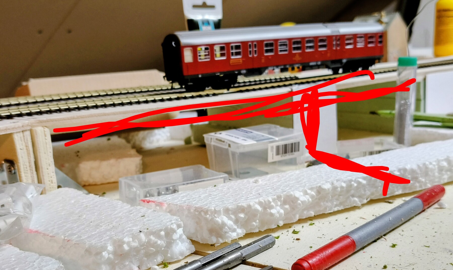 Ik heb mij nu bezig gehouden met de afwerking van de spoordijk.
