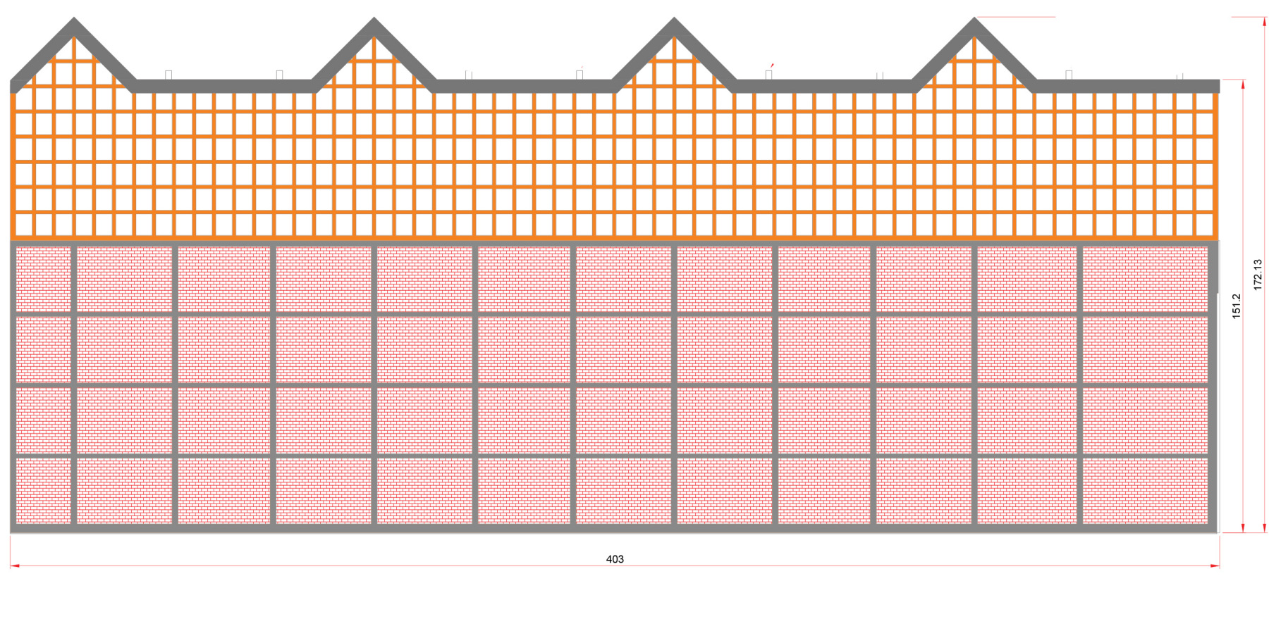 Koen had de loods zelf al grotendeels gebouwd, maar het leek mij eigenlijk eenvoudiger om het gehele gebouw opnieuw uit te tekenen, in plaats van enkel een dak dat perfect moest aansluiten op bestaand werk.