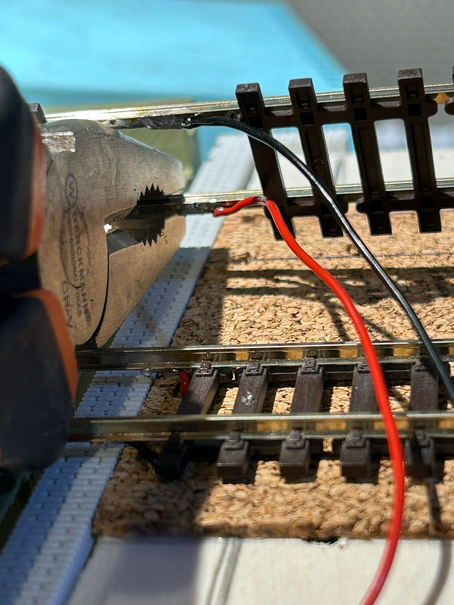 Hier zijn ook al bielzen verwijderd en de railsstaven op de overgangbielzen gesoldeerd.