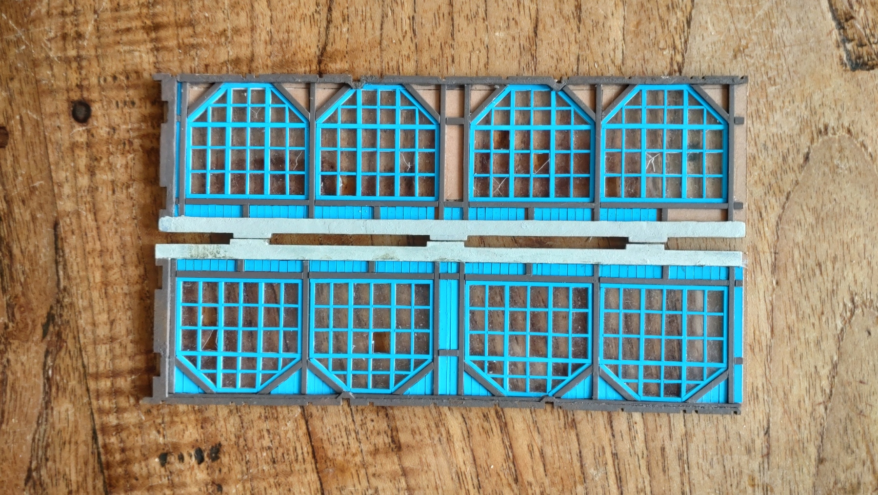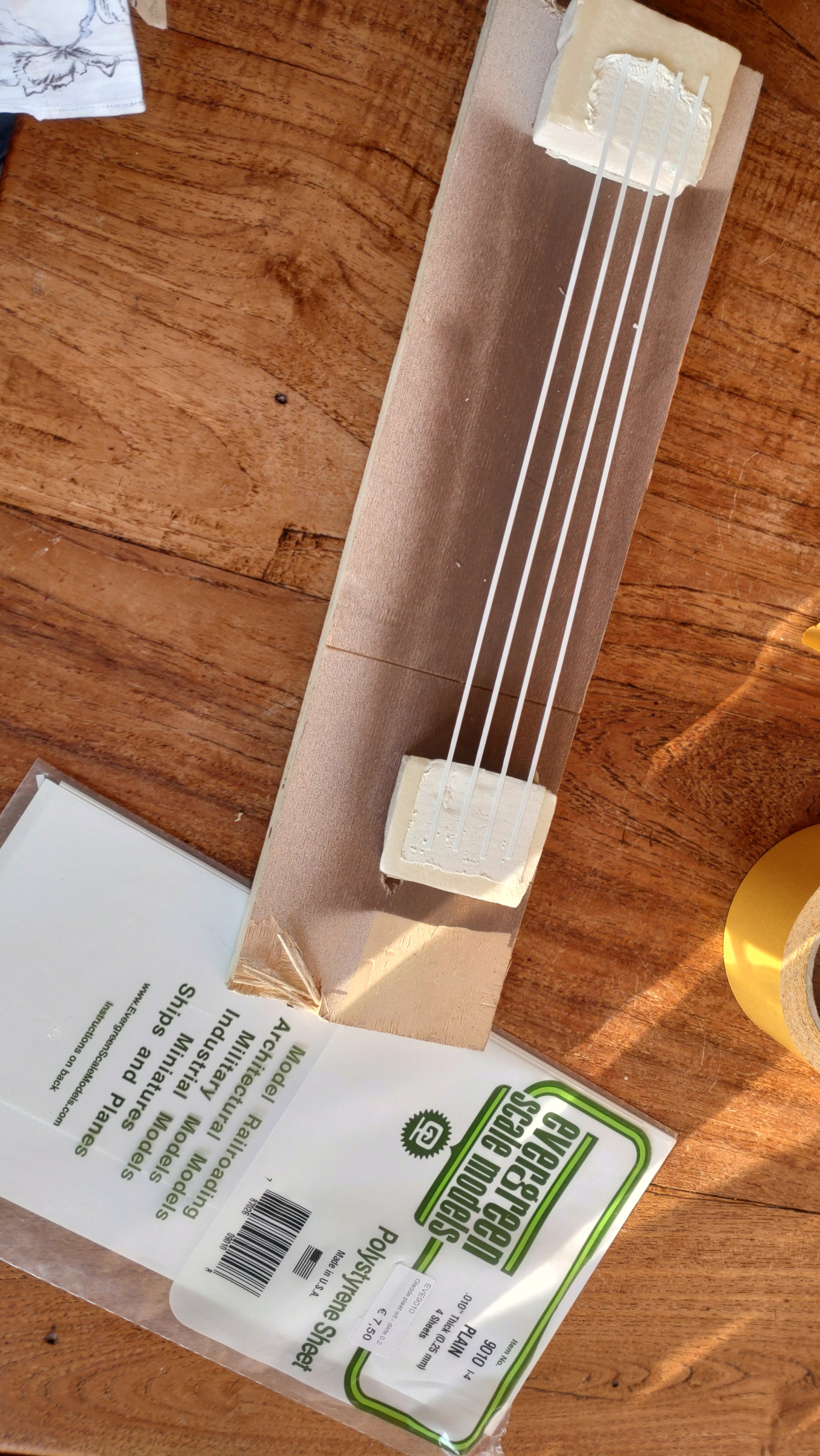 Deze week voorzichtig weer wat verder gewerkt. Ik had niet genoeg blauwe stripjes van 2mm bij 0.25 dus ik heb nog maar een extra gitaar gemaakt. Die kan ik straks even spuiten.