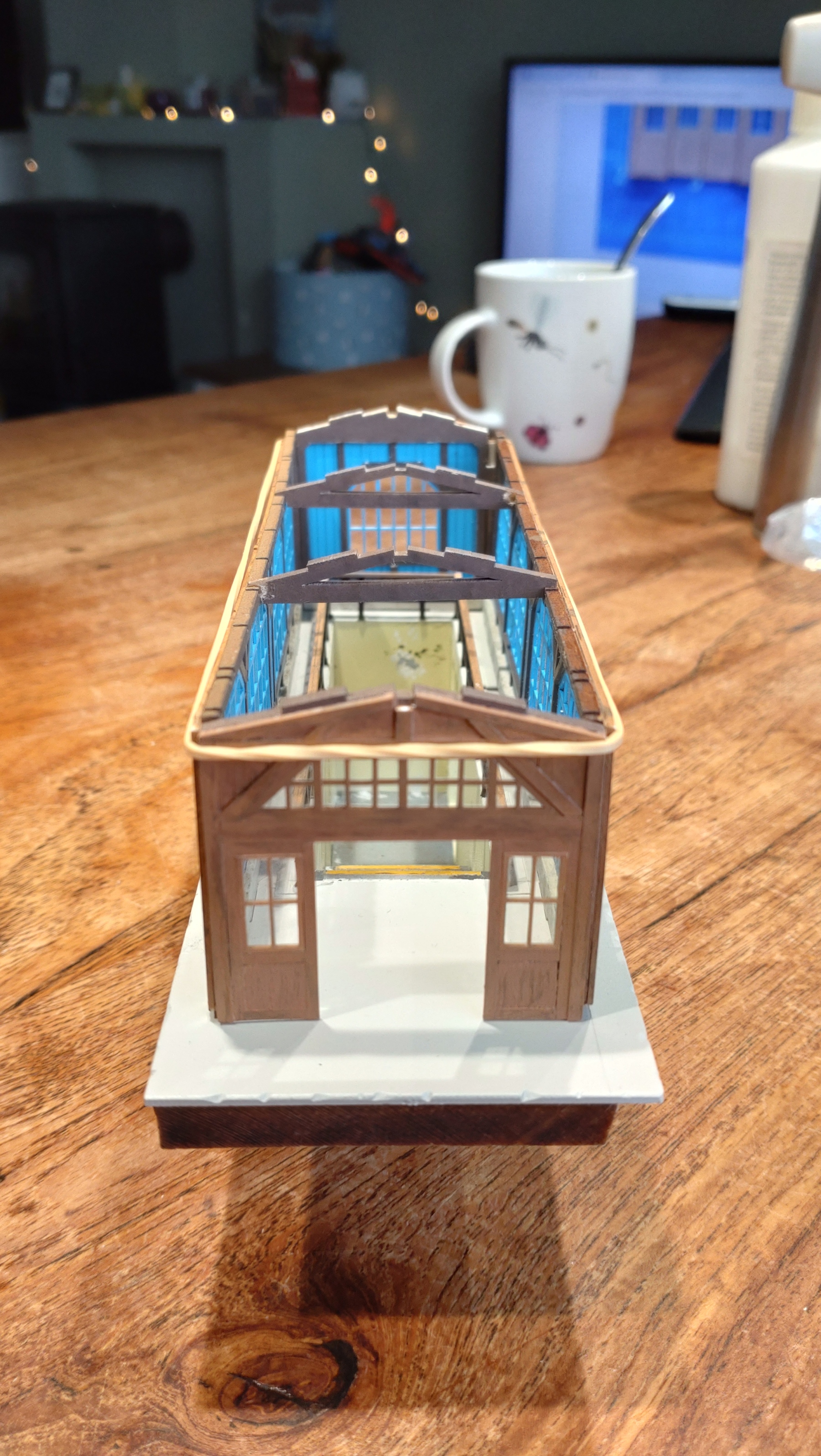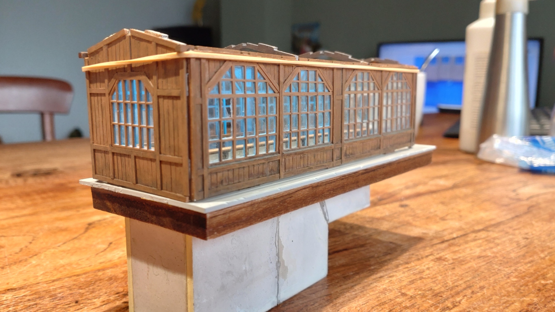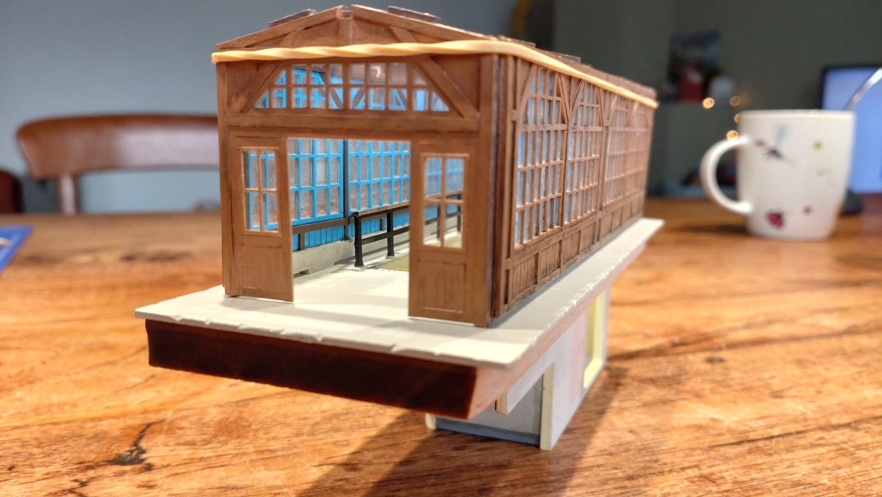 Ik had een hekje Auhagen om het trapgat gezet, heb ik de helft verkeerd om vast gelijmd. Toch los getrokken in een vlaag van ingeving en natuurlijk gesloopt krak, alles weer kunnen repareren en lijmen zoals het moest. Nu nog even bijwerken met verf. Het is een beetje rommelig geworden door die domme actie maar het staat binnen dus ik denk dat het wel goed wordt.