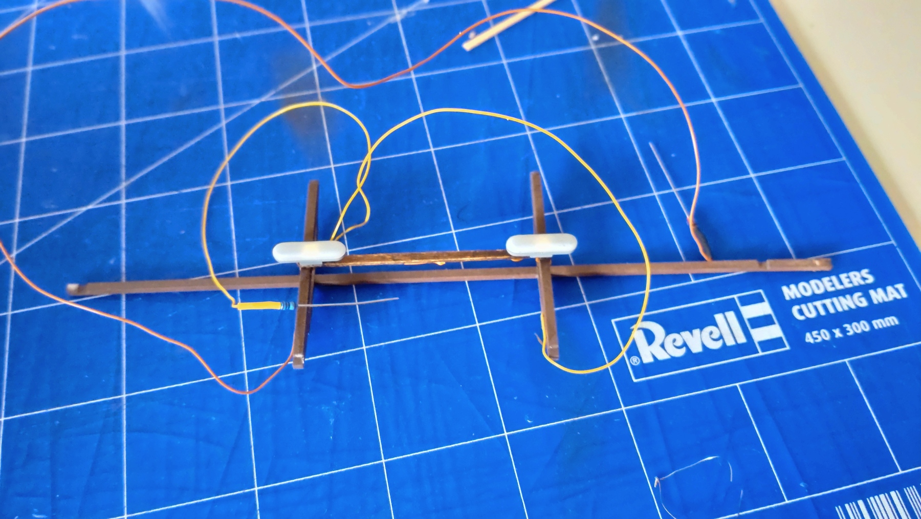 En ik heb de lampjes alvast gemonteerd en de draden geplakt.