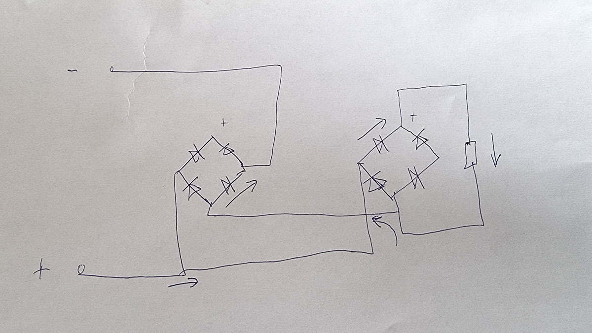 Constateerde alleen maar dat de diodetekens verkeerd staan, en daardoor zou het kunnen dat je op het verkeerde been wordt gezet.