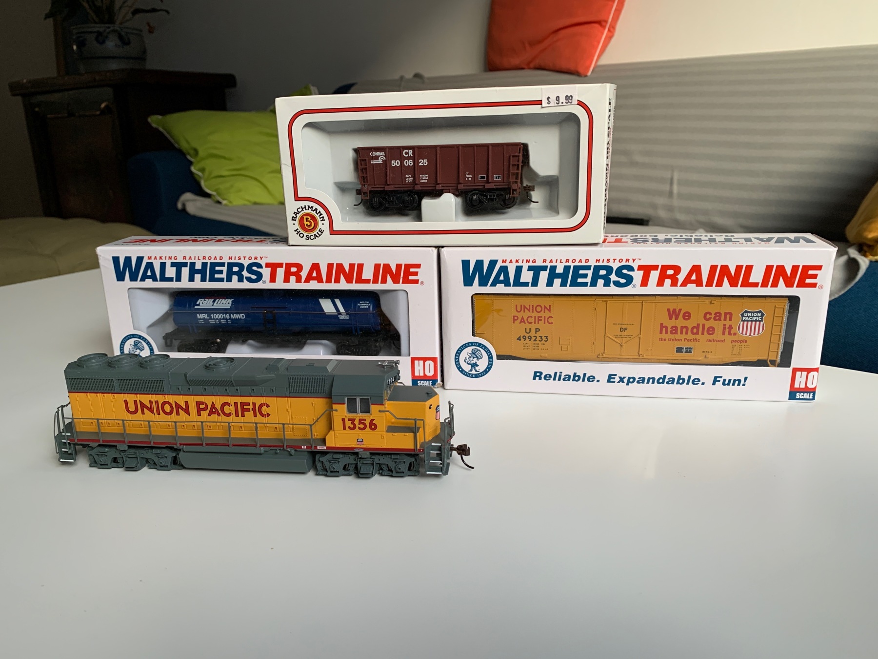 Modelspoorzaken zijn er weinig in hartje San Francisco, maar in het landelijke Oakdale vond ik nog een zaakje met wat uitverkoop. Mijn buit betrof de nieuwste editie van de Bachmann GP40 en een handjevol goederenwagens van Walthers Trainline en Bachmann. An sich niks bijzonders, maar de vakantie kostte al genoeg geld en het budget voor spontane treinsouvenirs was beperkt. De loc kwam in de kleuren van UP. Nou heb ik an sich niet zo veel met UP (ben meer van BNSF), maar het zien van echte UP-locs aan het werk in Californië maakte dit model wel aantrekkelijk.