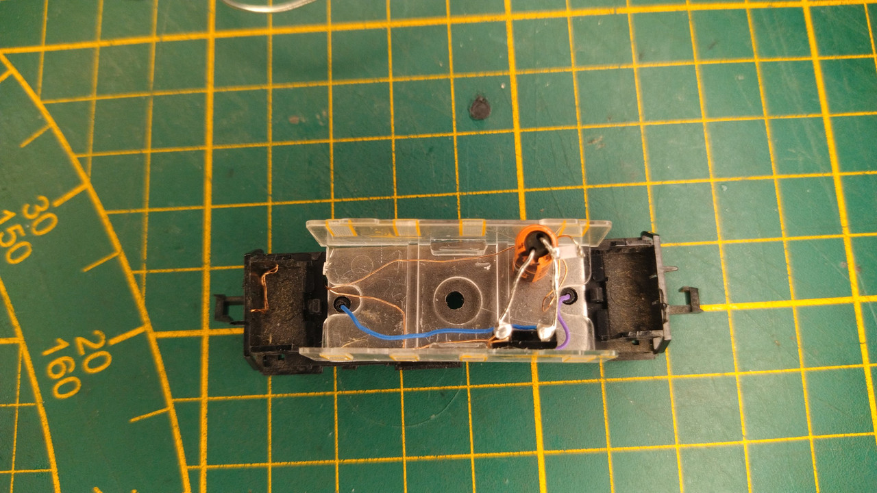Als de draadjes aan zijn getrokken en het chassis (zonder dak) zit weer op zijn plaats, is dit het resultaat.