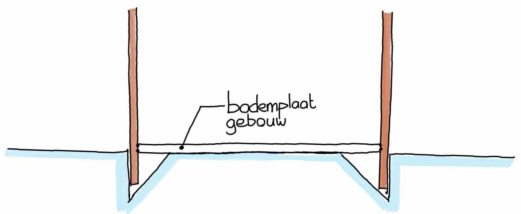 Het gebouw staat uiteindelijk op de bodemplaat/vloer van het gebouw zelf.