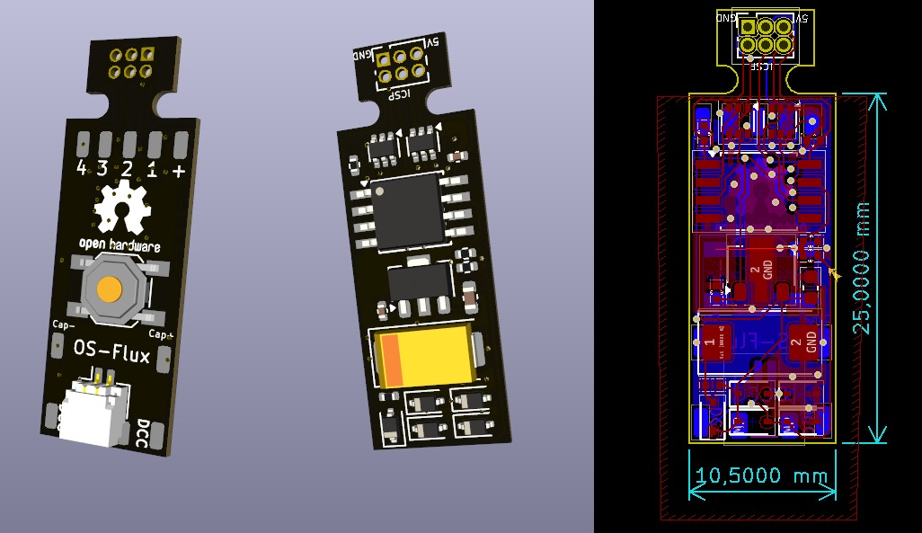 Dat is dit geworden. De connector en schakelaar zitten op de niet bestuckte kant. Ze zouden denk ik wel dubbel bestuckt kunnen worden, maar dat kost natuurlijk meer €€€. Niet leuk voor kleine oplages.