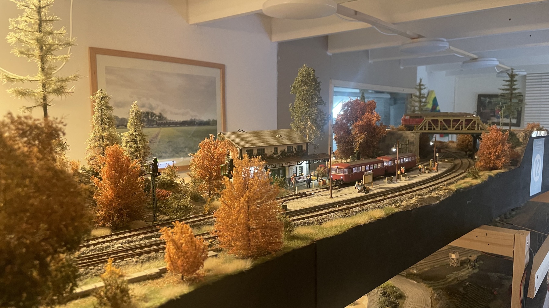Hele programma duurt net iets langer dan een half uur en wordt dan herhaald. Ga hier komende week nog wat personen pendeltreinen tussendoor laten lopen. Zou er uiteindelijk nooit meer dan pakweg 1 a 2 minuten geen bewegende trein te zien zijn op de baan. Lijkt me prima voor een beurs.