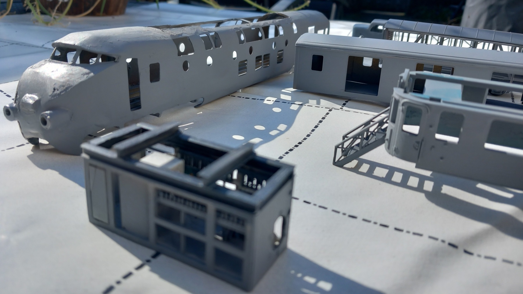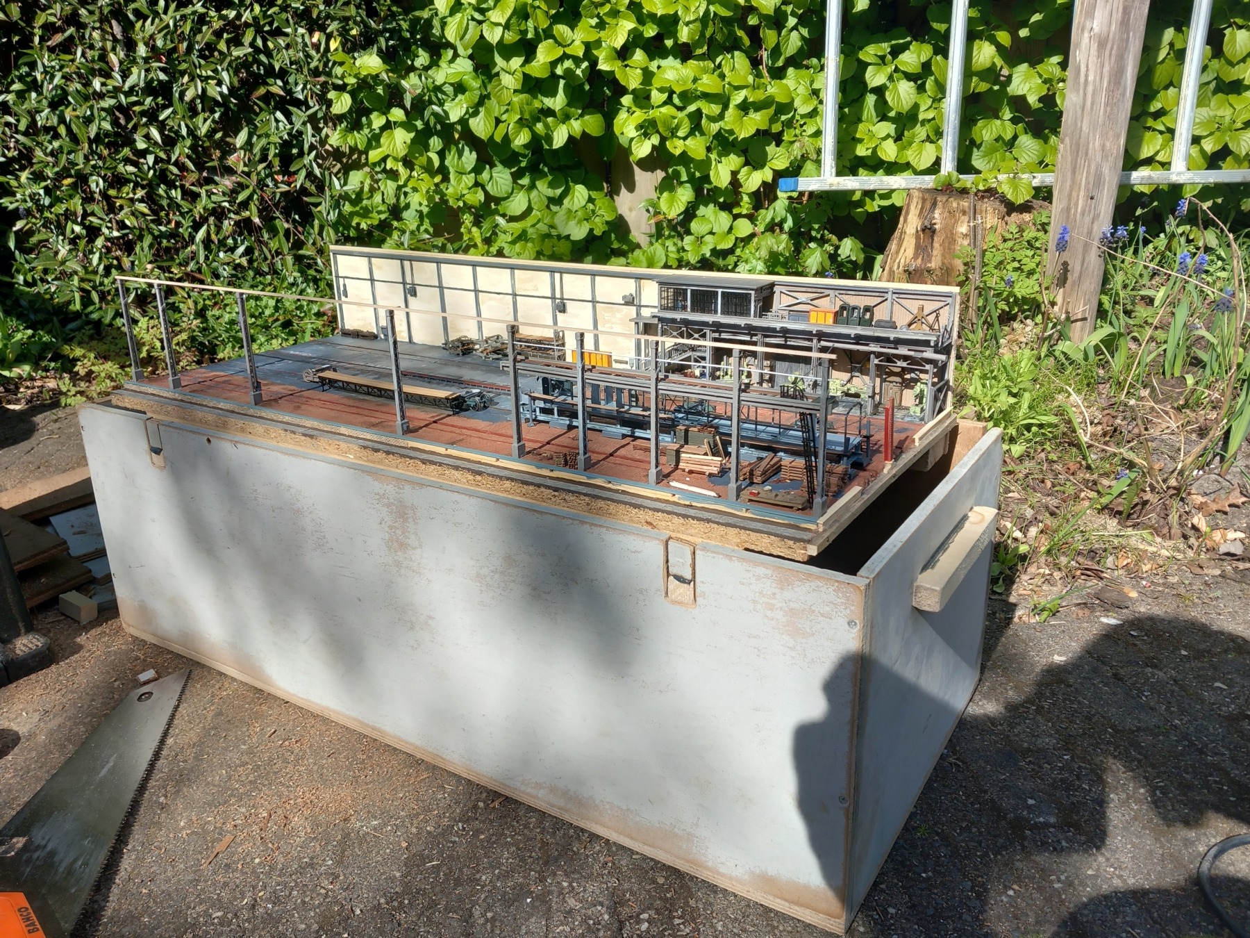 Voor de scheepswerf heb ik 2 aluminiumkisten, en de overige zoals zhesm noodwoning staan in oude camerakoffers. Dat wilde ik eigenlijk ook voor deze loods maar dat wordt door het formaat dan een lastiger en duurdere zoektocht. Vandaar nu van resten hout.
