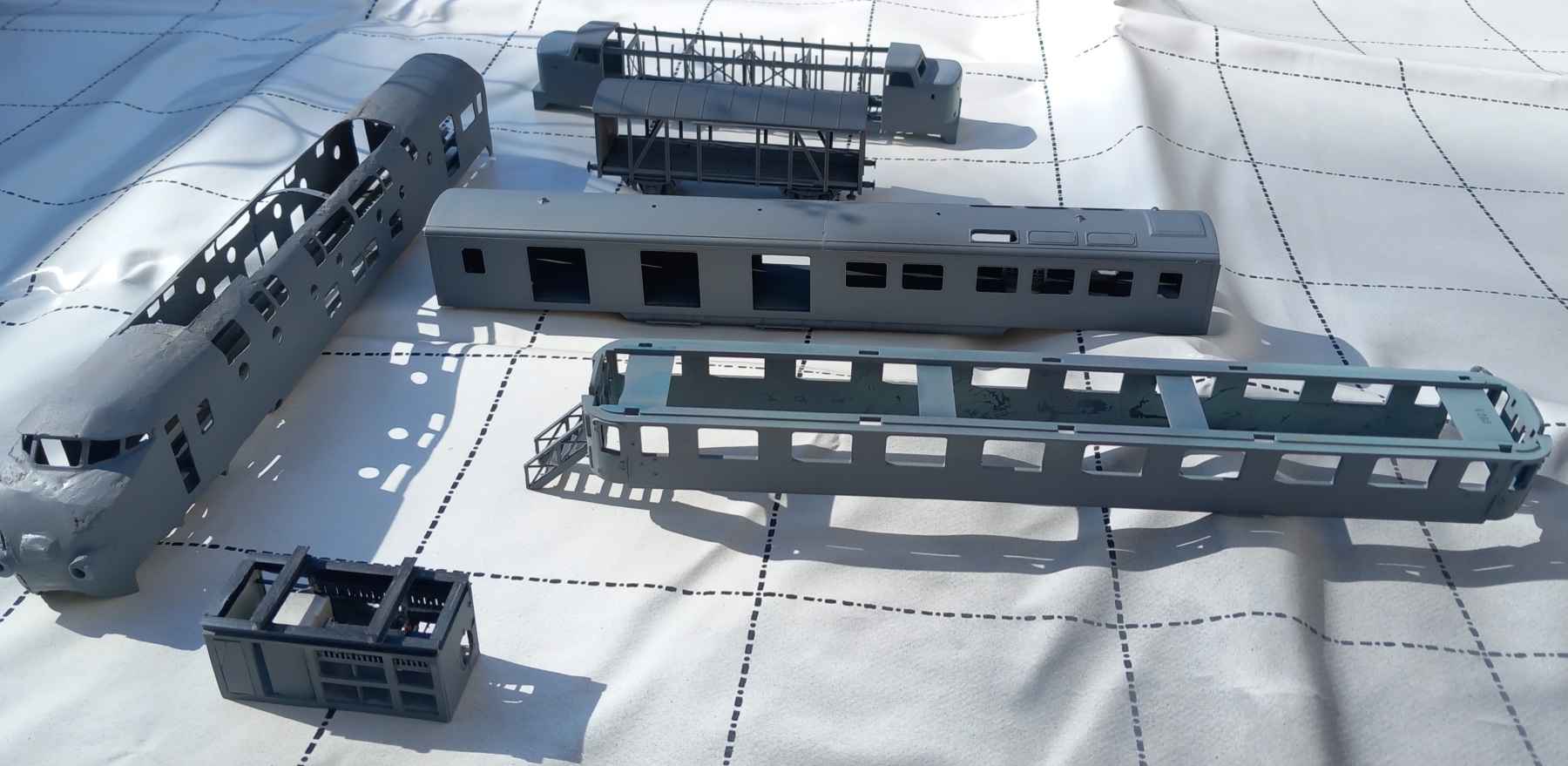Zo ook de evergreen spijlen van de NS 1200 in aanbouw, de Gs in aanbouw, en wanden en daken van plan L, pland D en de TEE motorwagen. Deze laatste gaat voorlopig in de opslag, daar wil ik nog wel een keer wat mee maar dat is voor een latere uitbreiding van de loods eventueel. Maar het restje uit de spuitbus kwam ik precies mee uit dus toch maar ff meegespoten.