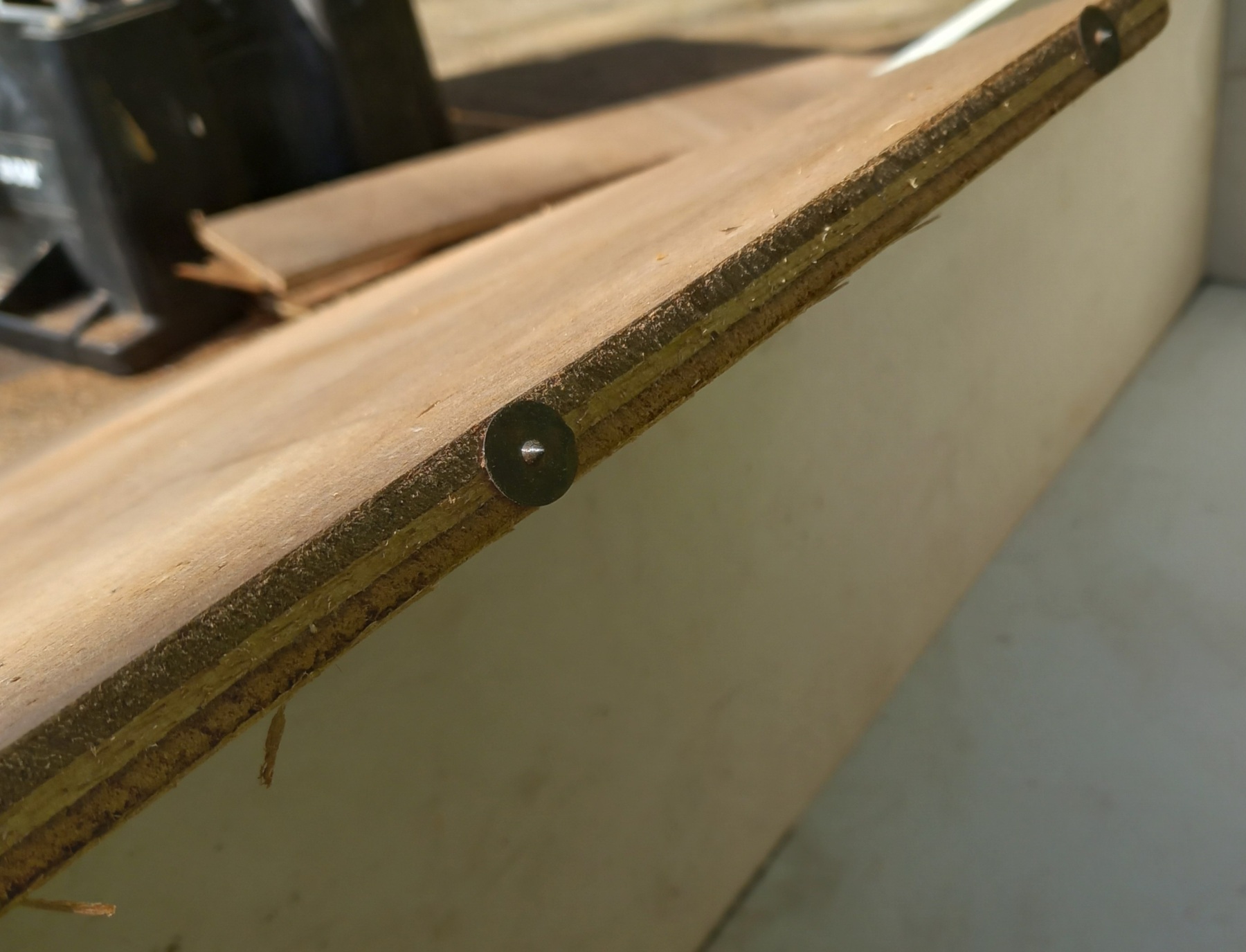 Het idee is nu om de (het?) deksel met piano scharnier uit te voeren, en in omhooggeklapte toestand gelijk de achtergrond wordt voor de loods.