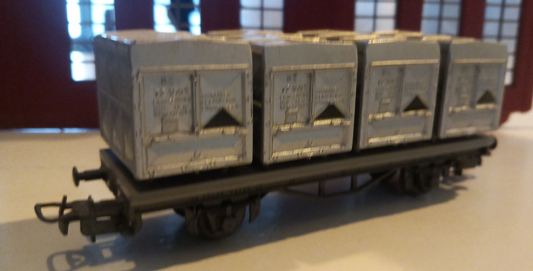 Betreft een oude liliput, gekocht voor de containers. Wagon gaat eronderuit. Opschriften deels eraf en dan een preiser erbij die er weer opschriften op gaat zetten...