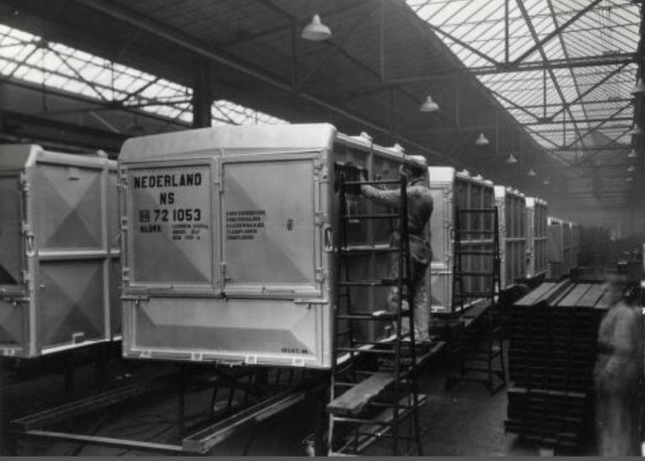 Vond van de week op de website van kombuispraat, ook nog een schítterende foto van de bouw van de TEE motorwagen, hier met plaatsen van 1 van beide motoren in één van de 5 motorwagens bij Werkspoor Zuilen, daar wordt je toch blij van?