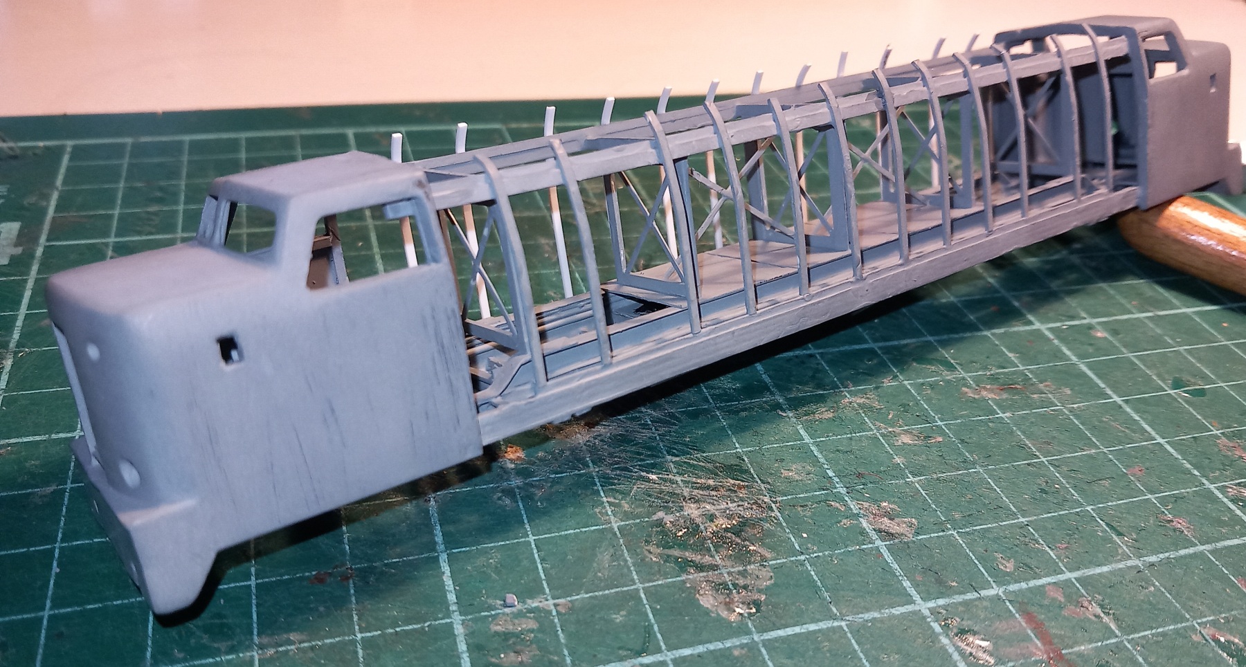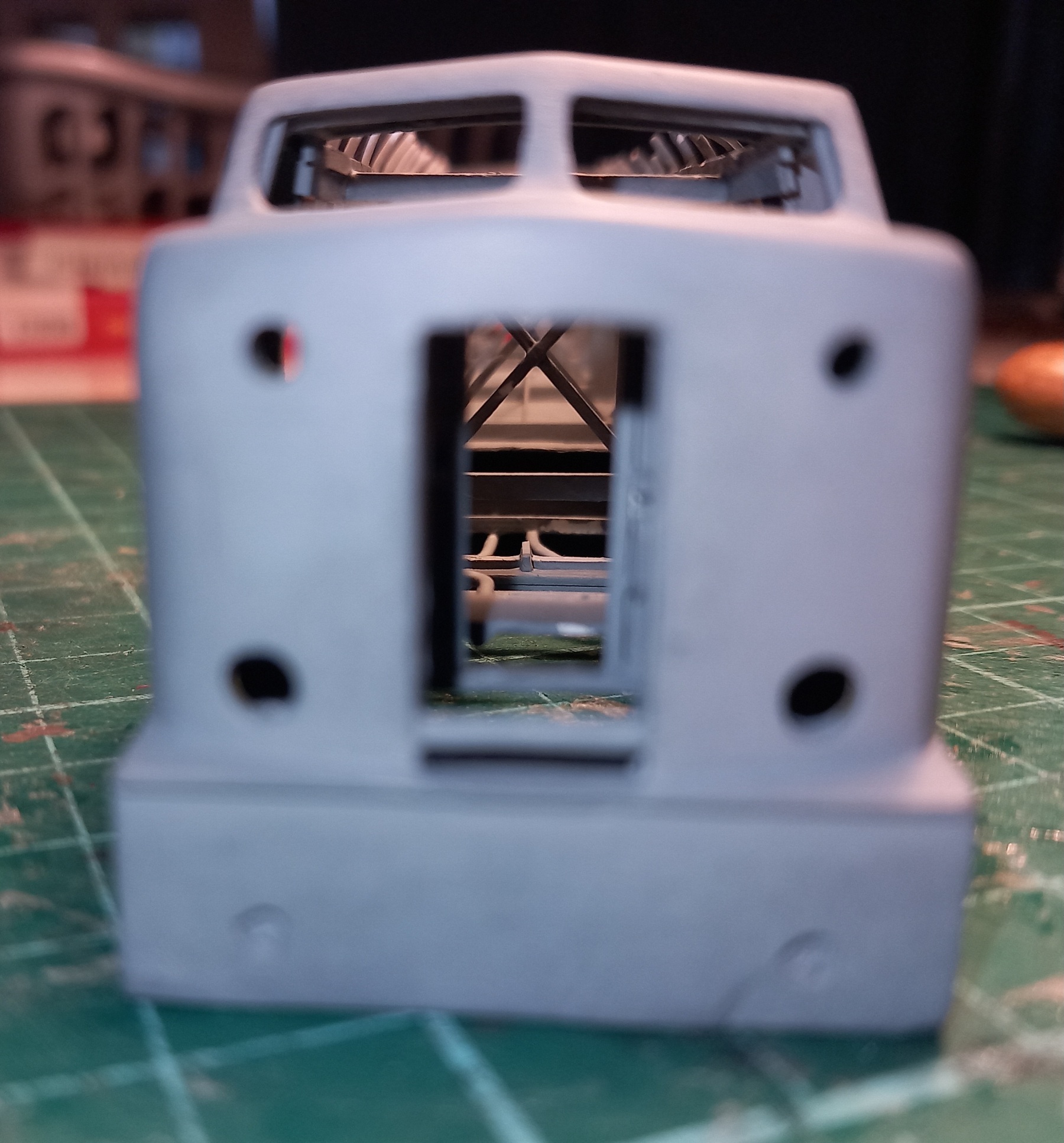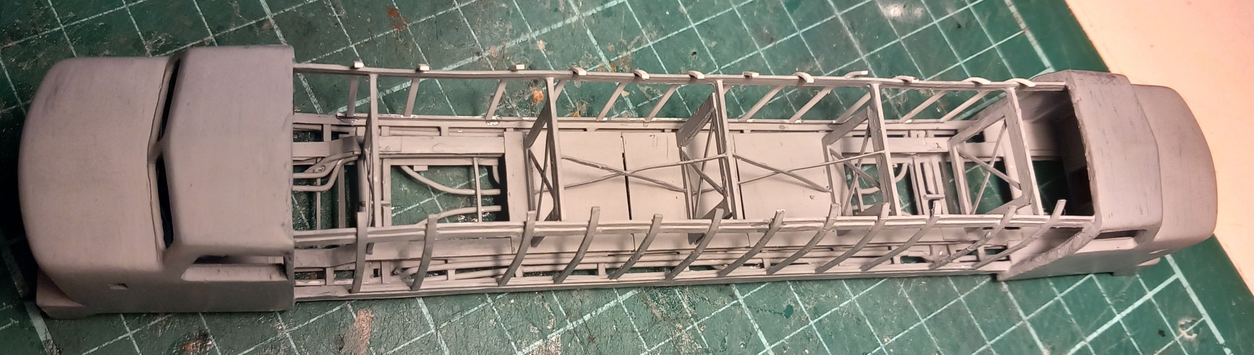 Af en toe ook eens wat afmaken, na bijna een jaar de laatste ribben op de 1200 in ruwbouw kunnen zetten. Onlangs de ontbrekende evergreen strippen kunnen halen. De opnames met de kleine rondjes zijn door de bovenste frontlichten, en daardoor is goed het gangpad te zien dat langs de apparatenkasten liep.