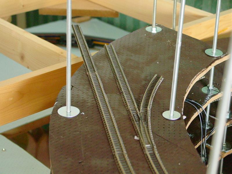 Het binnenspoor krijgt een wissel. Dit spoor maakt nog een driekwart cirkel om dan een stukje hoger een in- en uitgang voor de spiraal te vormen. Dit is een close-up van de afslag.