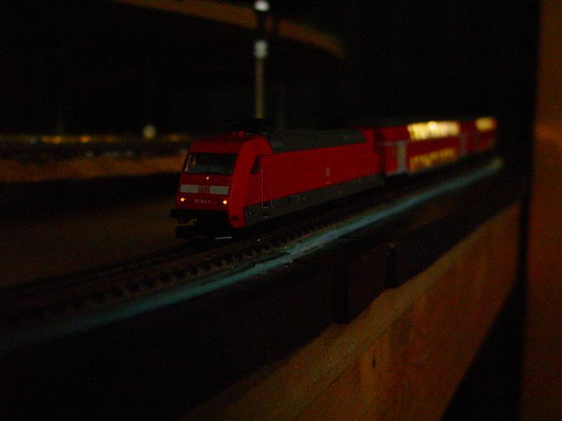Deze foto in het donker heb ik gemaakt om te laten zien dat de loc toch wel verlichting heeft die enigszins zichtbaar is: