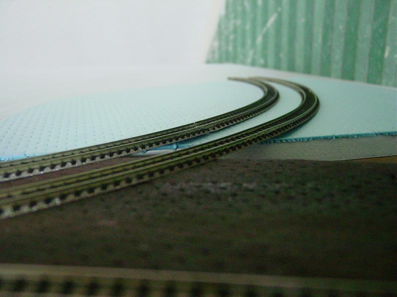 Het volgende project is al begonnen, namelijk het van de spiraal af laten lopen van twee sporen. Ik heb ze voor proef al even uitgelegd en ook al een klosje aangebracht om wat extra mdf te plaatsen, zodat de rails niet zweven zoals op onderstaande foto. Het vervolg zal ongetwijfeld deze week wel ergens komen en dat betekent meteen het begin van de bovenbaan en dan wel het gedeelte Hookyville.