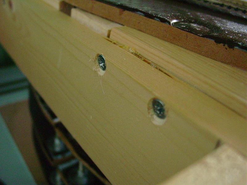 Mijn laatste foto's brachten enkele opmerkingen teweeg. Waarom had ik de kruiskopschroeven niet verzonken met behulp van een verzinkboor. Simpel: ik heb geen verzinkboor, maar het zou steviger zijn en ook gewoon mooier. Dus vandaag een verzinkboor gehaald en aan de slag gegaan. Nu zijn de kruiskopschroeven dus verzonken. Alle klosjes zitten nu muurvast. Niet dat ik nu meteen perfect werk heb geleverd met die verzinkboor, maar goed, al doende leert men.