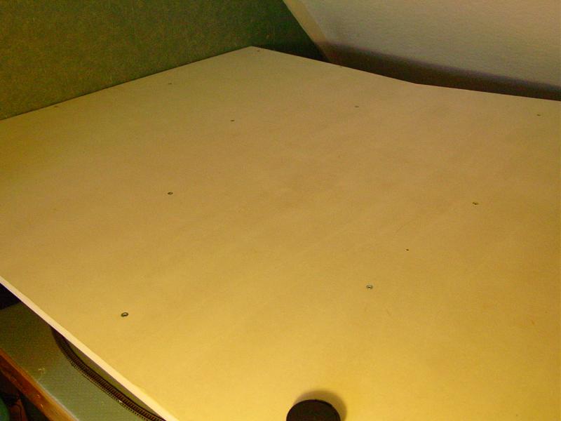 Hoe het straks gaat aansluiten, is iets voor later. Eerst ga ik de ruimte in de kamer benutten om het bovenste deel, waar station Hookyville komt te liggen, te bouwen.