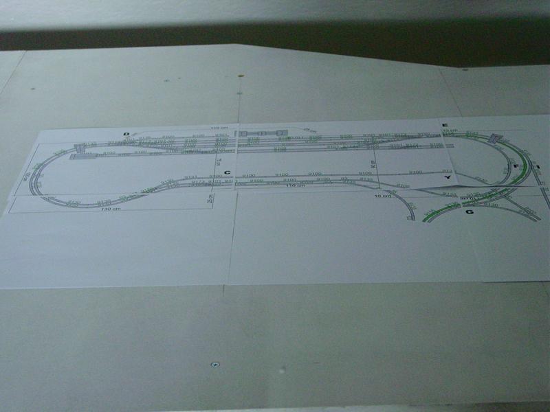 Op de middentafel ligt het uitgeprinte baanplan al klaar. Het lijkt wel alsof ik bijna ga beginnen met de aanleg van het deel Hookyville.