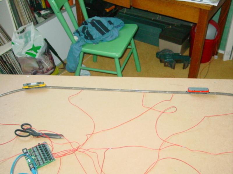Koploper laten werken viel even tegen, maar dat is ook logisch als je geen COM-poort kiest bij instellingen, maar alles gewoon op test laat staan. Toen ik dat doorhad, werkte het redelijk naar behoren. Af en toe reed een loc nog wel door de stopsectie heen, maar gaandeweg werd dat wel beter. Moet nog wel de nodige variabelen gaan testen, maar eindelijk ziet het er naar uit dat er weer eens wat meer gaat gebeuren.