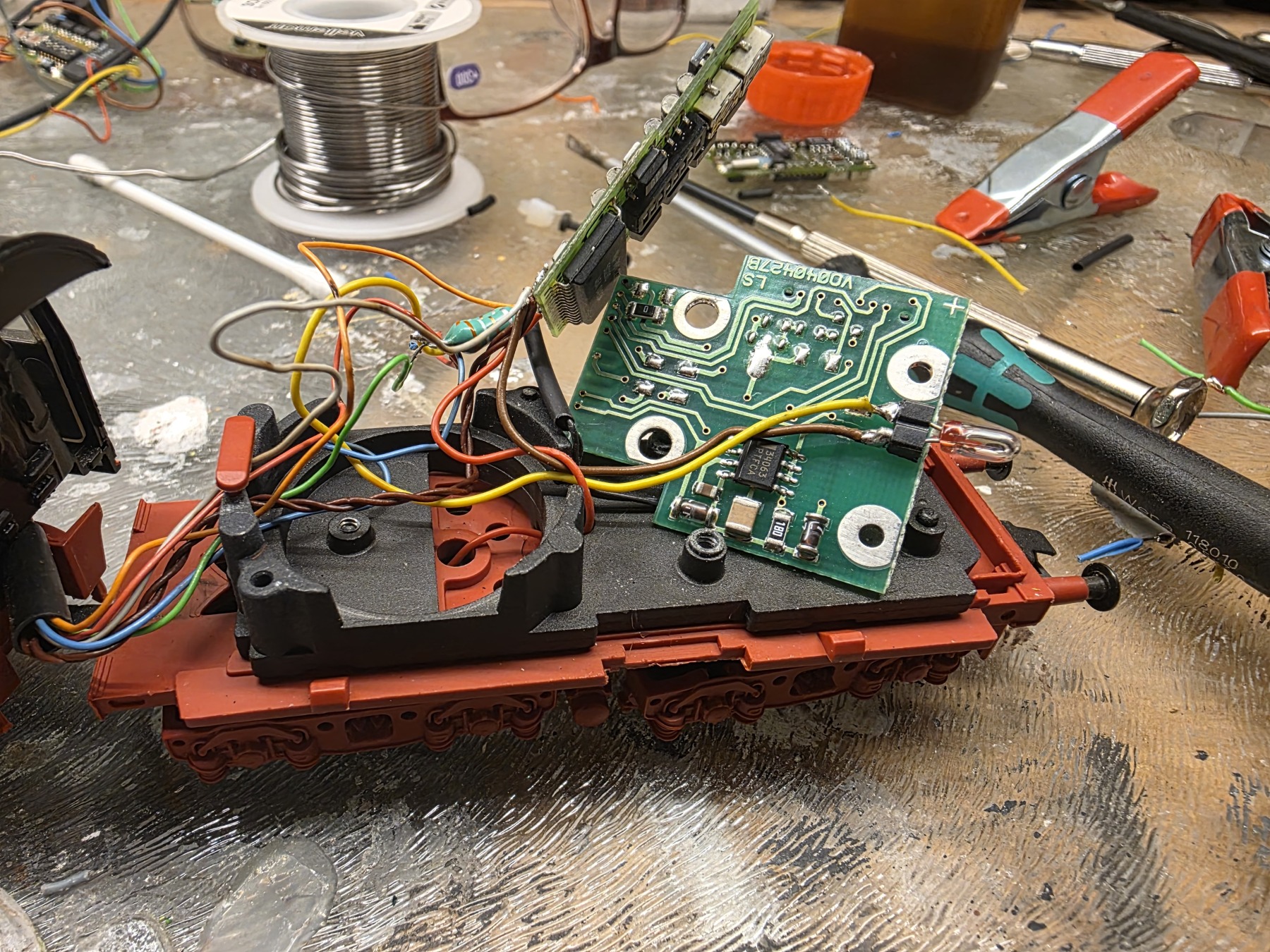 Het rechter printje zat er standaard in met een stekker en het lampje er onder gesoldeerd.
