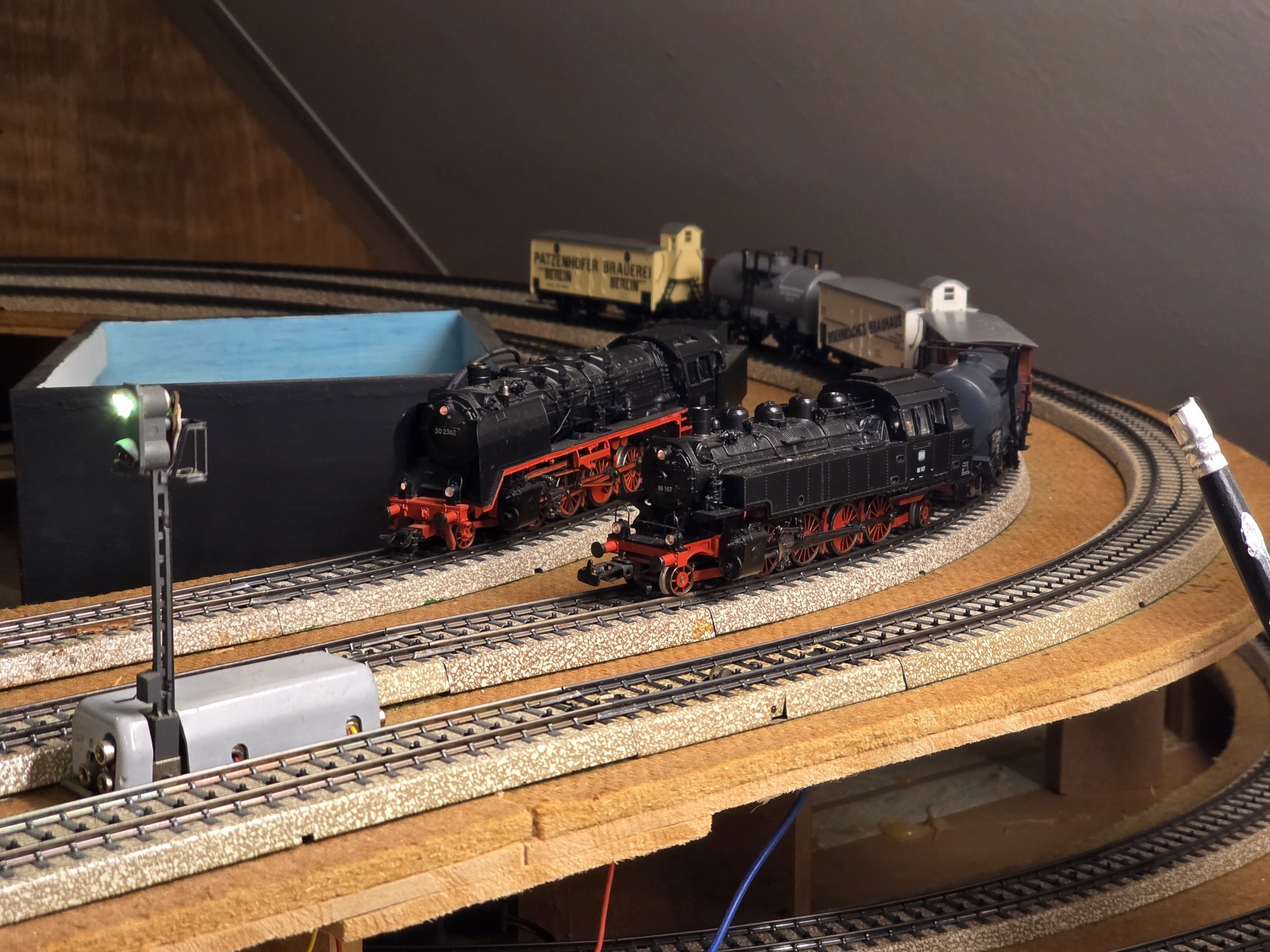 Wissels en seinen op de ouderwetse manier met blokken.