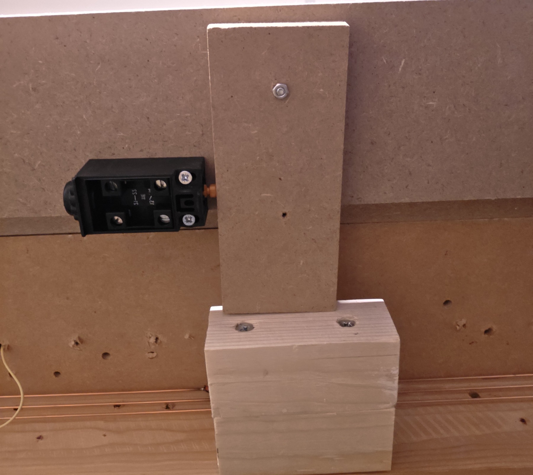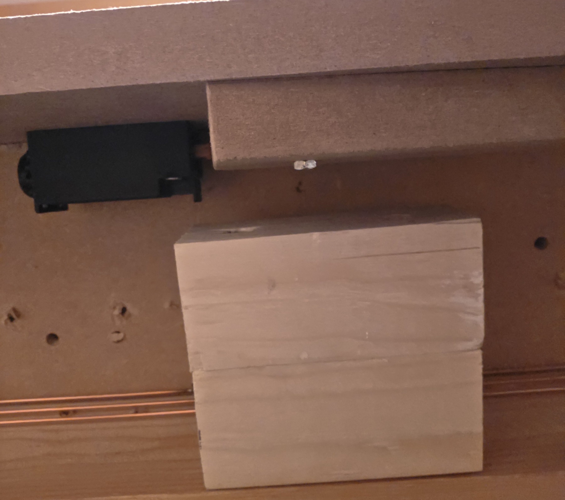 Hier vanonder gezien in horizontale stand, met melding spoor onder spanning.
