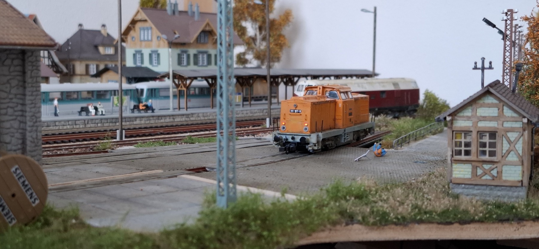 Maar het resultaat telt. Het is leuk om bij het station weer wat te kunnen rangeren. Zie ik nu trouwens pas...... dat preisertje was er ook ondersteboven van