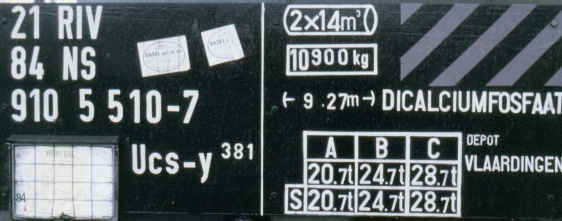Voorbeeld voor een 2-assige particuliere NS- ketelwagen, die 100 km/h kan rijden