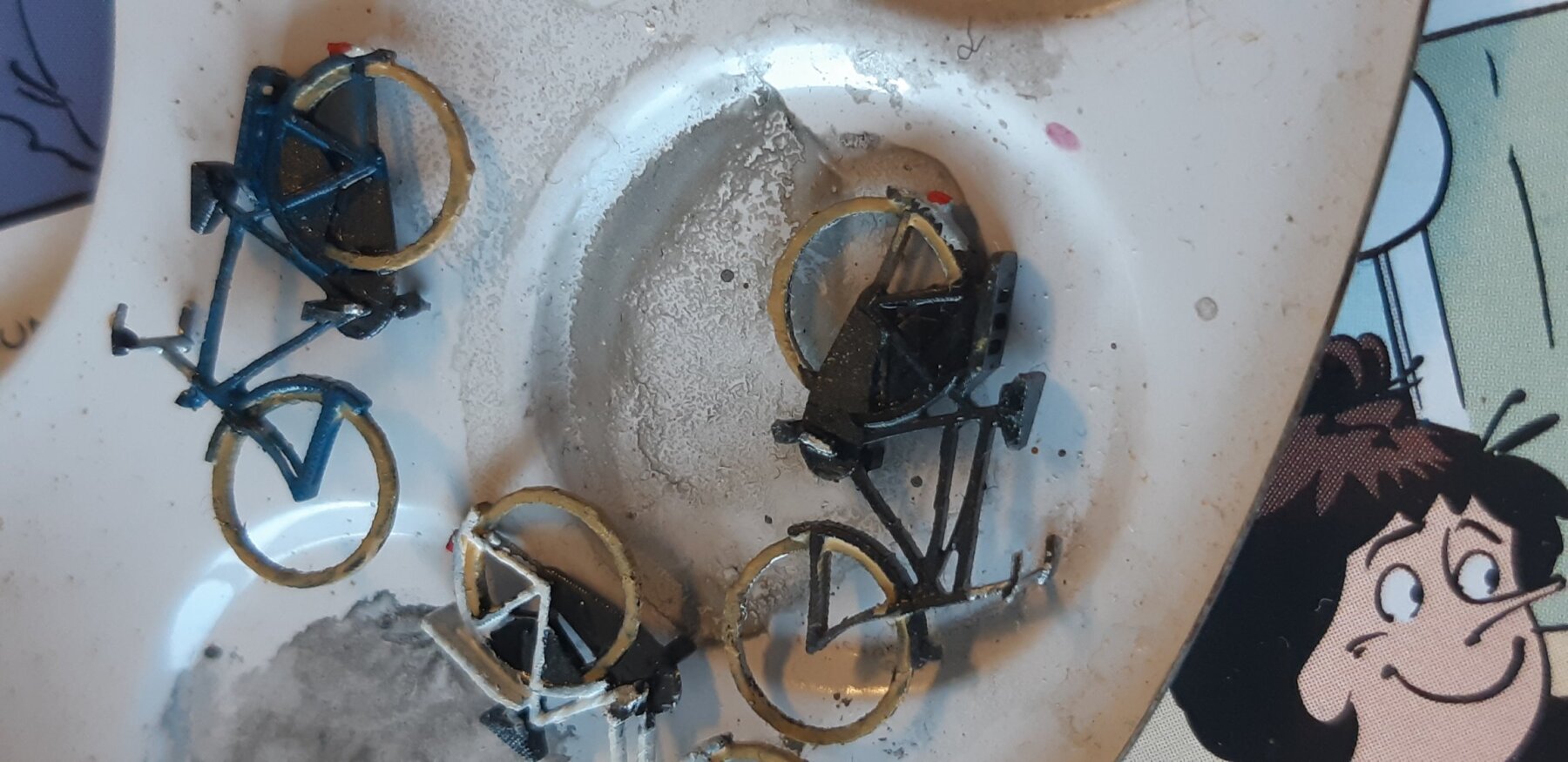 Gelijk maar beginnen om een paar fietsjes te schilderen. Leuk priegelwerk.