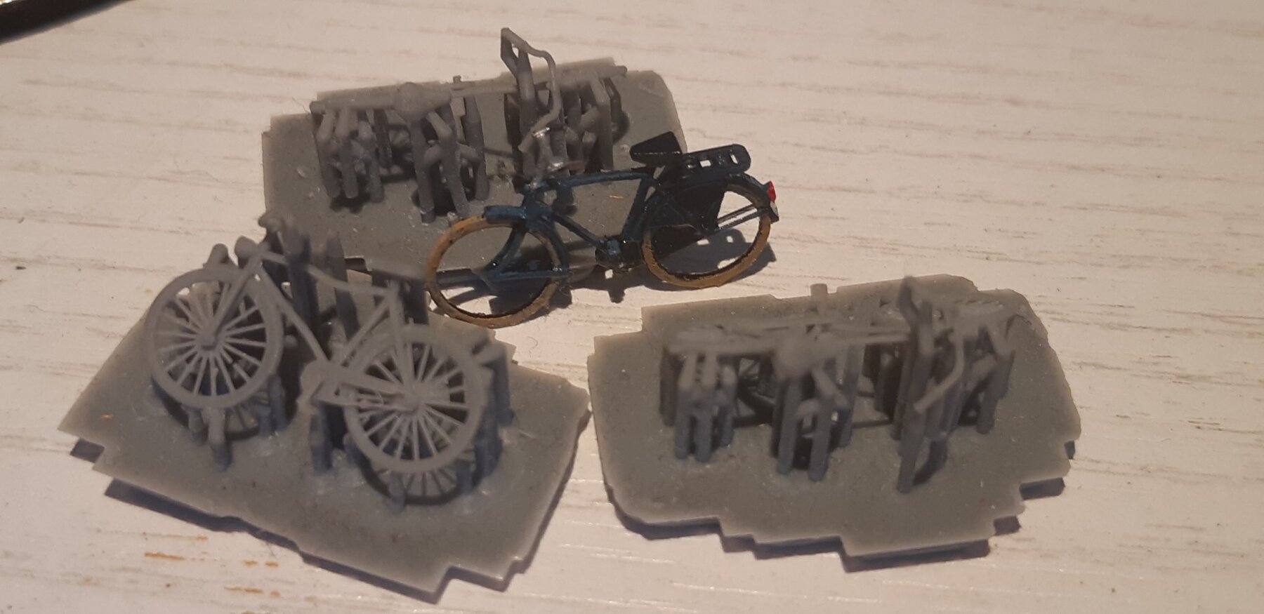 Hier wat fietsjes gemaakt door mijn zoon mbv een resin printer, er tussen staat een fietsje van jou. Hij zei dat ik ze zelf maar moest zie los te maken. Dat heb ik tot nog toe niet gedurfd. De ontwerpjes kwamen van het internel als free download. Als je zelf al geen resin printer hebt en ze met ander spul kan mee laten printen, denk ik niet dat het economisch rendabel is om ze ook voor andere te gaan printen. Dat wordt denk ik veel te duur.