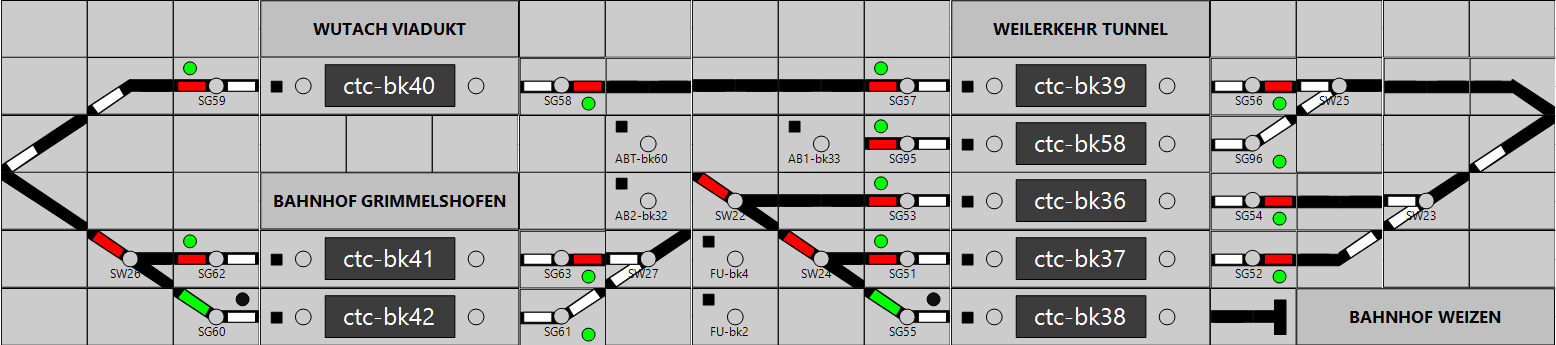 Zo wordt het corresponderende RR-spoorplan in het CTC-beheersgebied Weizen