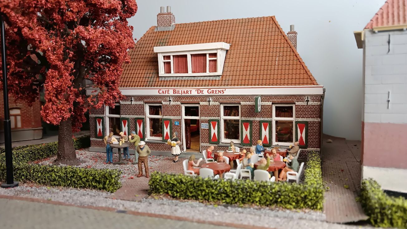 Bij het café aan de grens schijnt een heerlijke lentezon en dus is het druk op het terras.