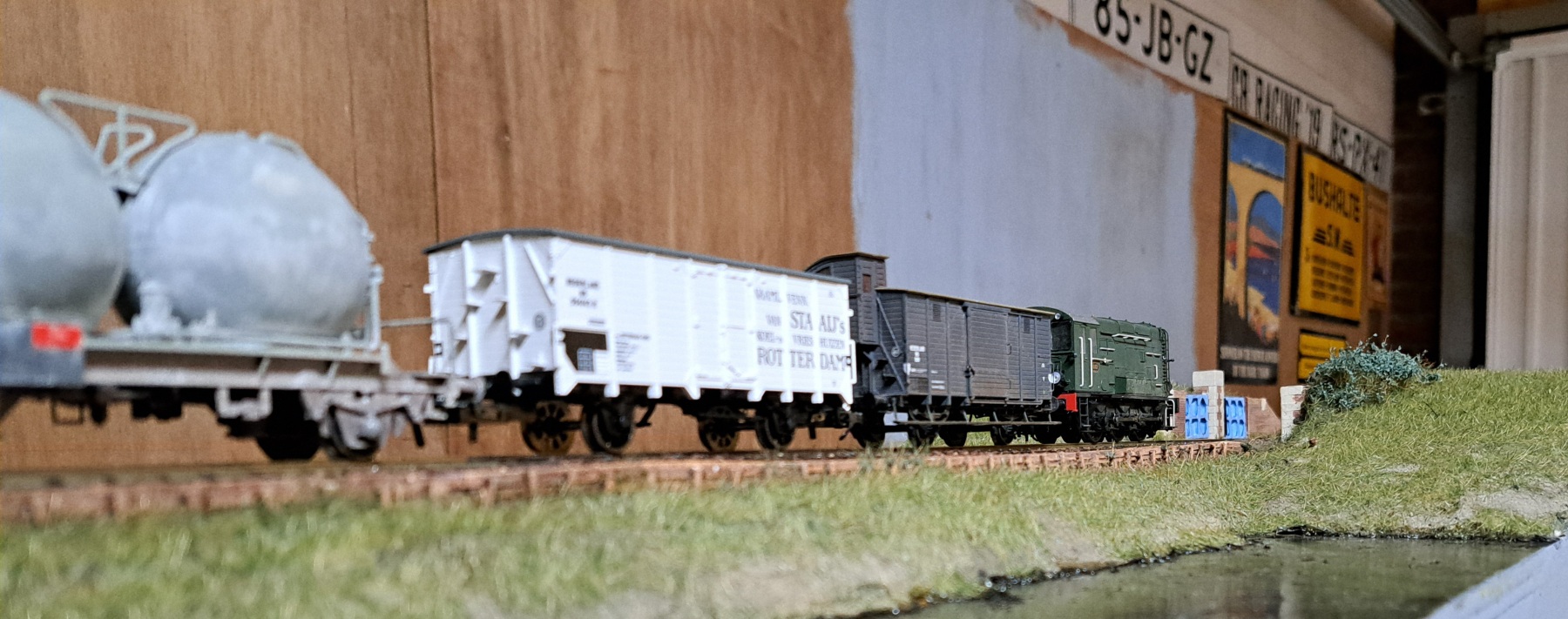 Omdat er weer een Fremo bijeenkomst aanstaande is, staan de Oostdijkse modules weer opgesteld in de garage. Alles doet het nog. De rails hoefde zelfs niet te worden gepoetst.