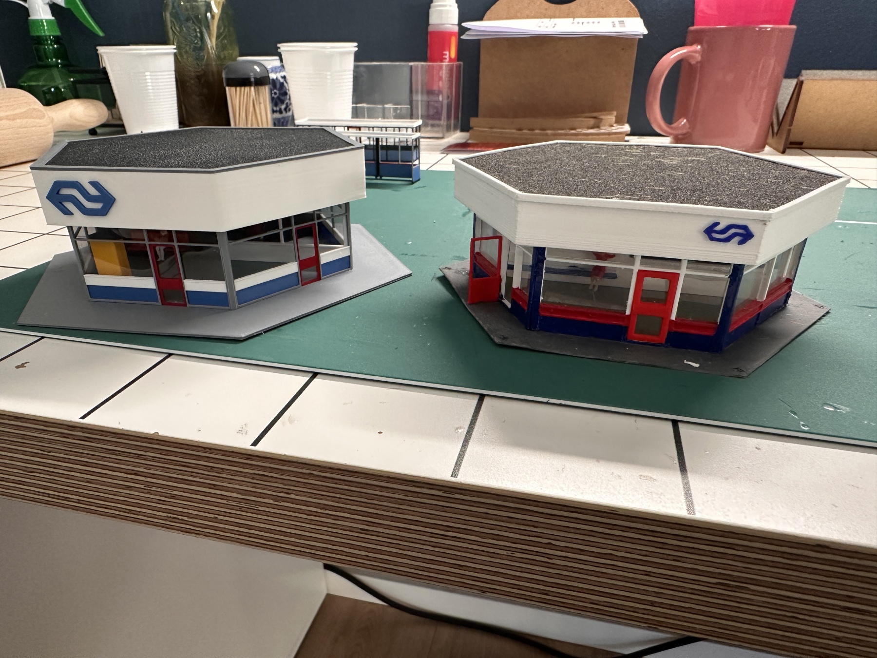 Daarnaast de wachthokjes van station Nieuwerkerk a/d Ijssel nagemaakt. Deze ga ik gebruiken als bushalte hokjes.