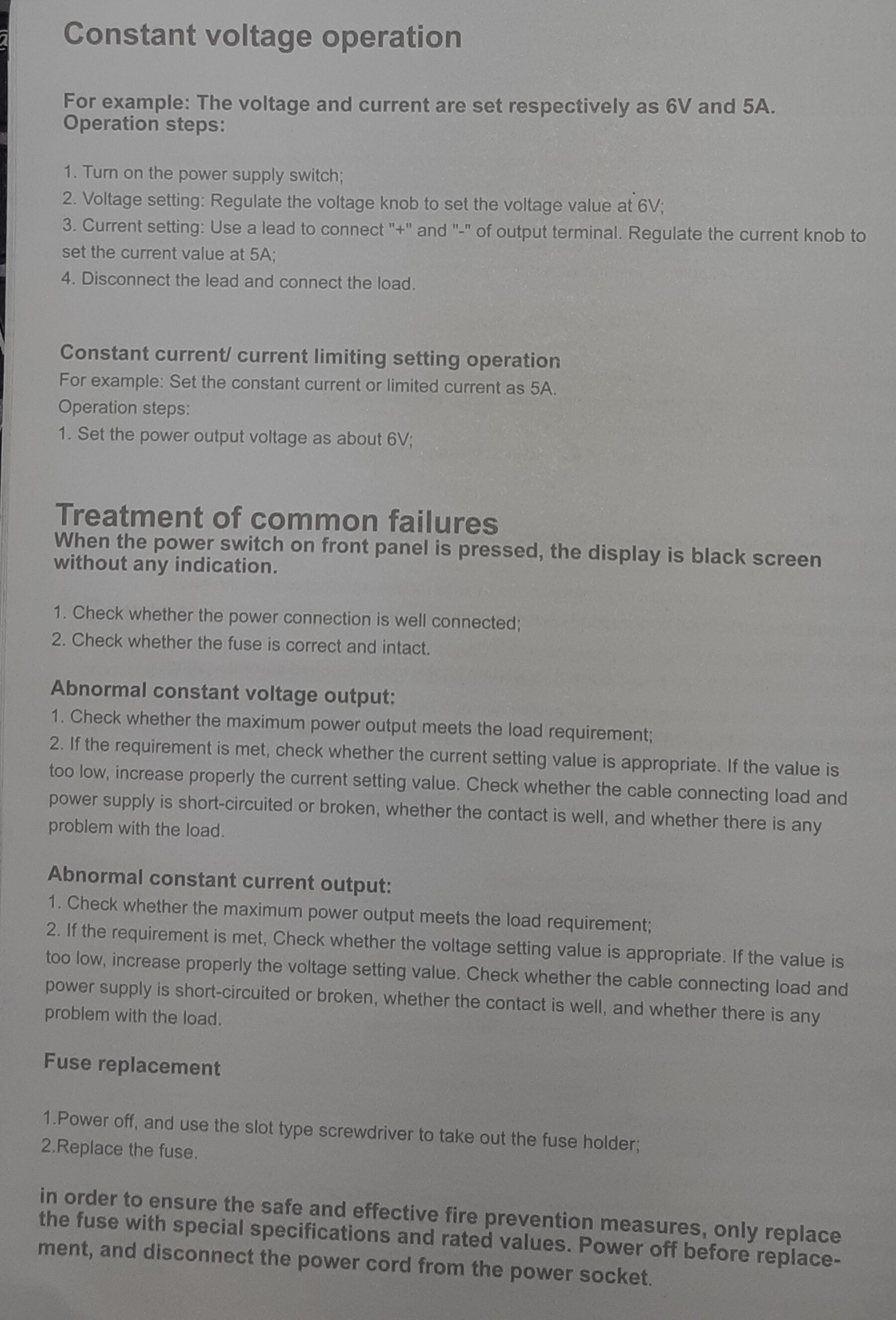 Aan de handleiding te zien is het een Aliexpress/Korad achtig geval, dus dan is (voor de toekomst, mocht je er ooit iets zwaarders mee gaan doen) het raadzaam om nooit langdurig de volledige stroom te trekken, maar daar flink onder te blijven (de helft is een goed uitgangspunt)