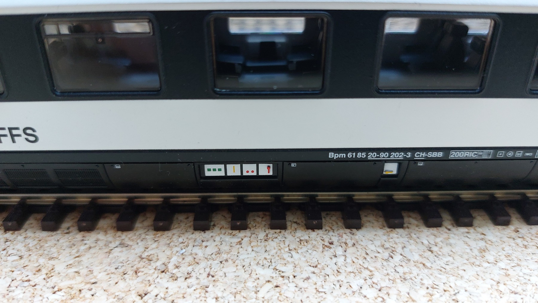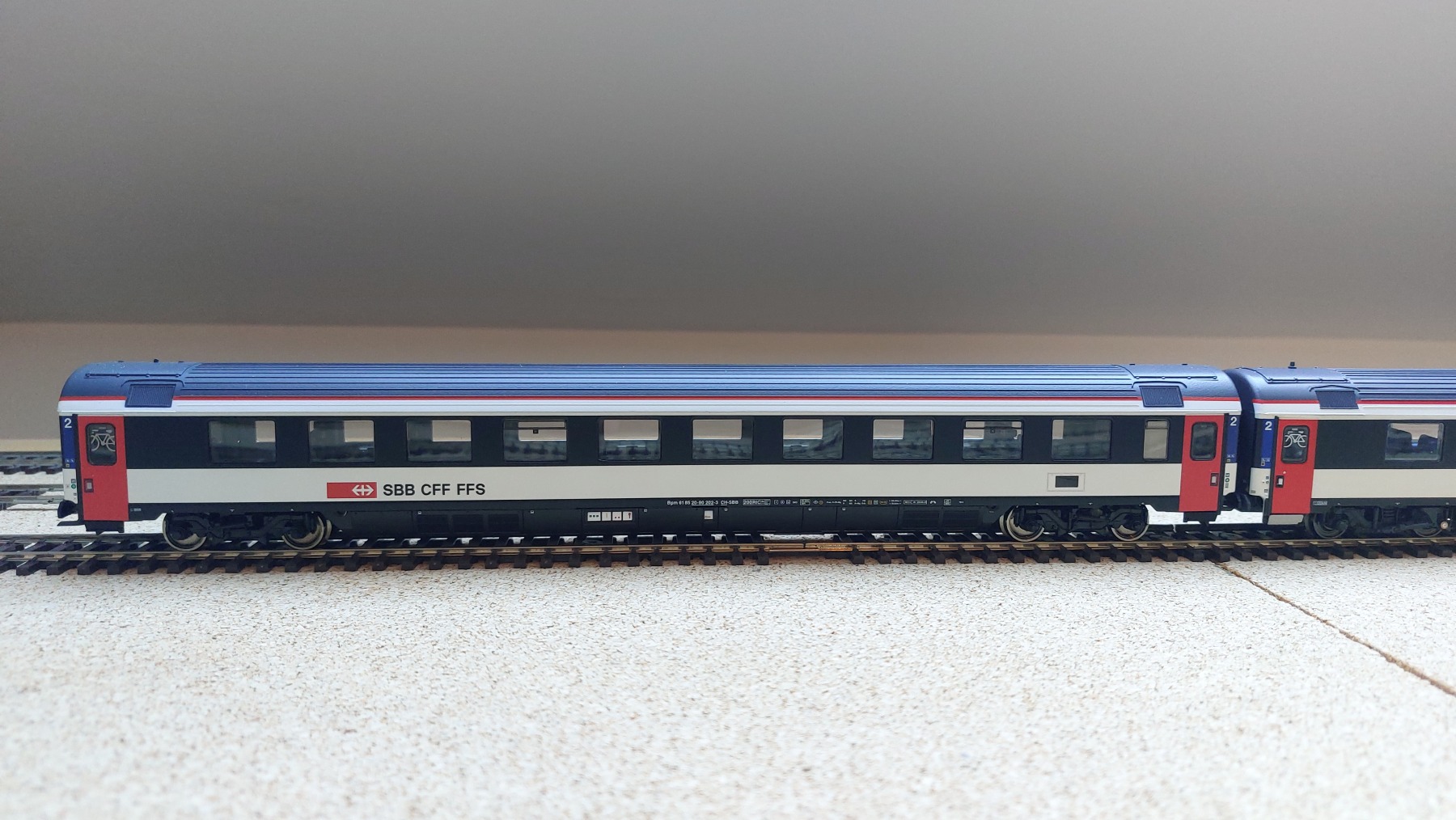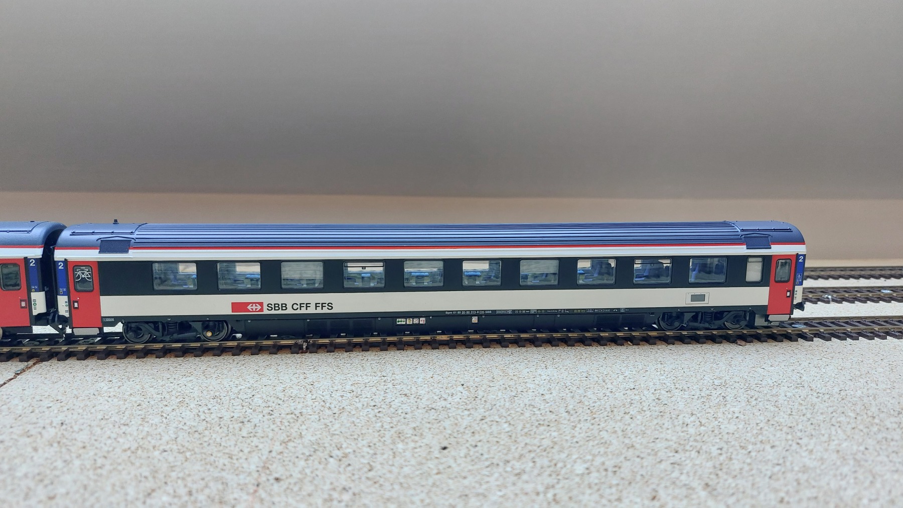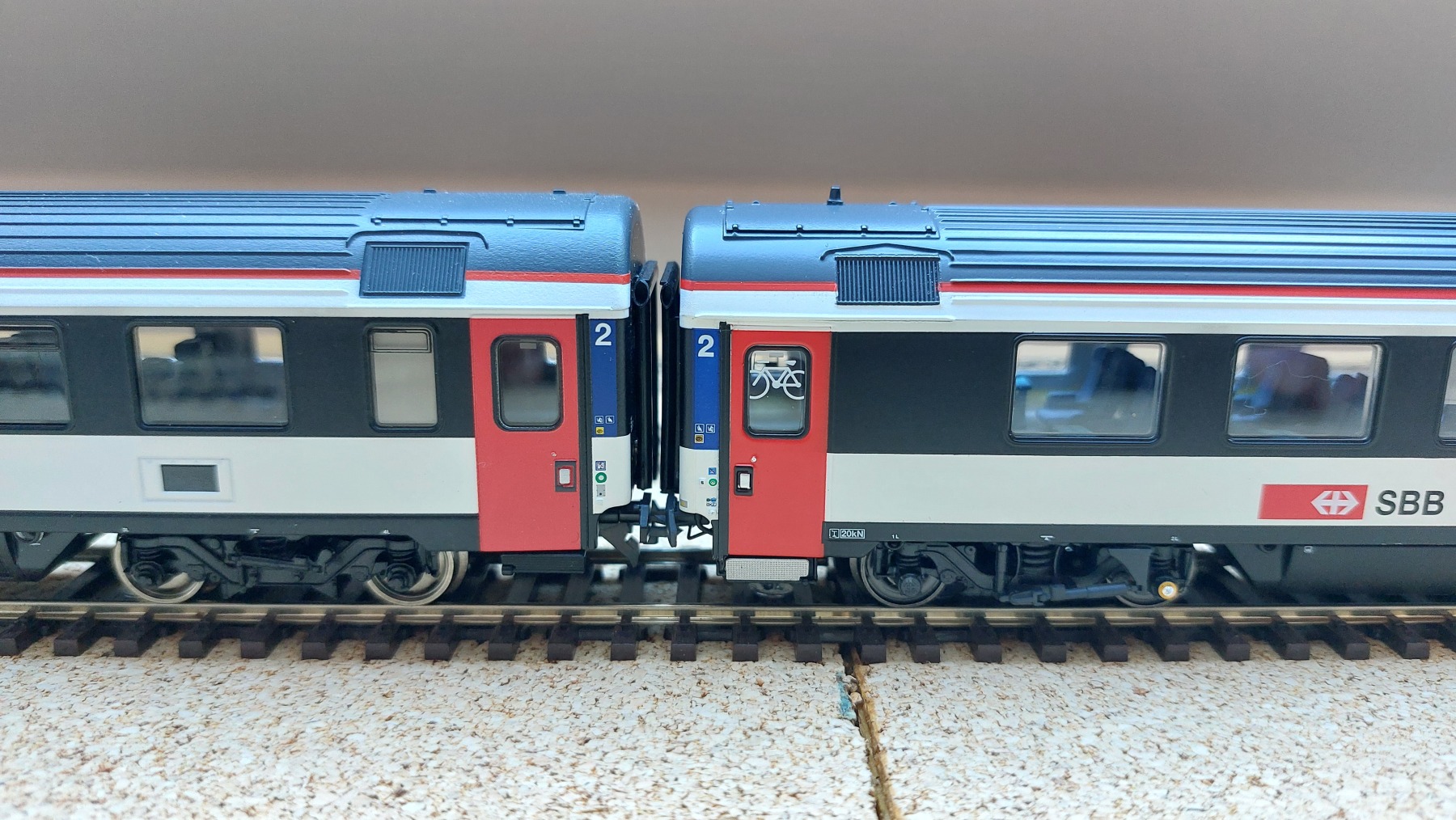 Ik heb zo'n Bpm met rode band onder het dak 1x gezien in de Nightjet. Dit zou dus kunnen, maar alleen als je de variant ná december 2023 maakt. De combinatie DB-IC1-rijtuigen met de SBB-rijtuigen met het nieuwe design heb ik in ieder geval niet gezien...