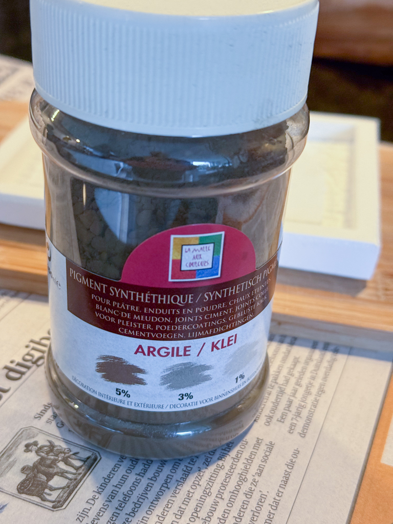 Die kleur heb ik gekregen door synthetische pigmentpoeder voor gipspoeders er doorheen te mengen. Daar had ik deze voor gekocht: