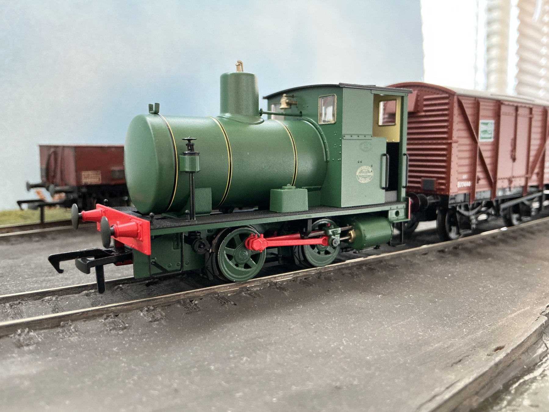 In deze uitvoering rijdt het lokje momenteel bij de Doon Valley Railway. Een neutrale groene kleur maakt haar echter geschikt voor een veelzijdige inzet. De eerste rijtest is positief, ze rijdt mooi rustig. Door het frame heen zie de koppelstang aan de andere kant van de lok ook bewegen. Erg mooi voor zo’n klein machientje (8cm over de buffers). Ik ben er blij mee.