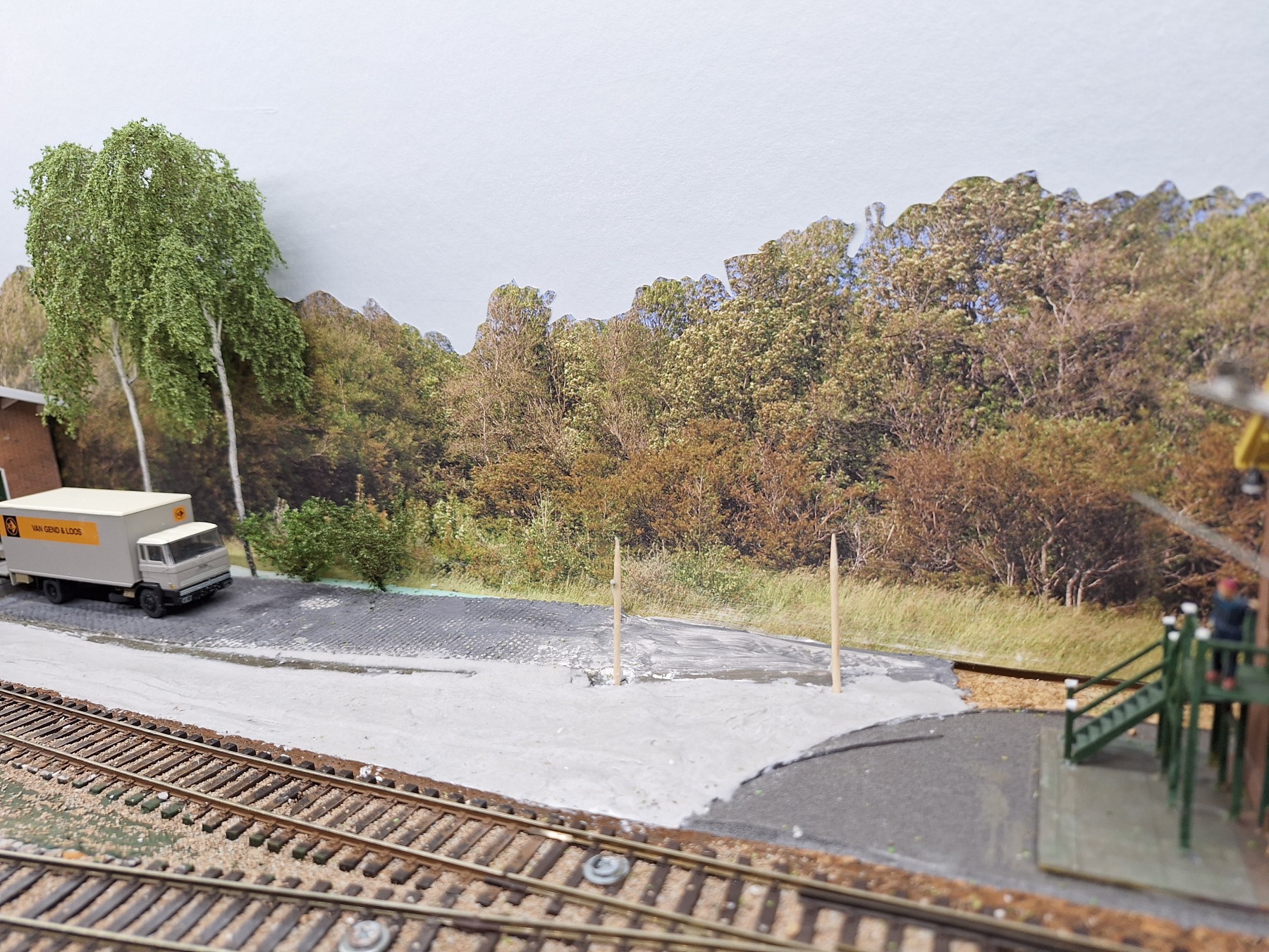 Voor het straatspoor en een talud naast het spoor is luchtdrogende klei van Action ingezet. Is goed en makkelijk te verwerken. De droogtijd is minimaal 12u, maar na droging is het goed te bewerken (het wordt keihard). De verwerkingstijd is aanzienlijk zodat je lekker door kunt boetseren.