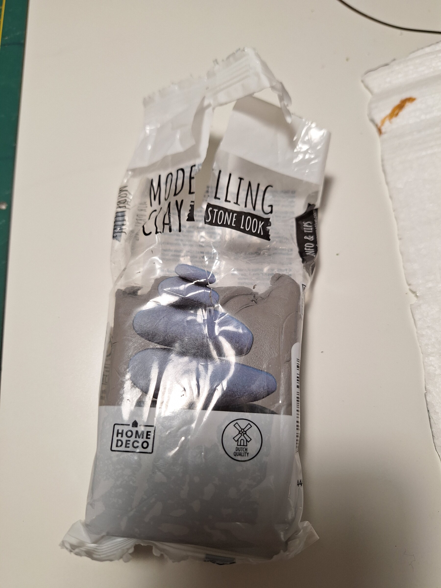 Het is een soort papiermaché, kant en klaar en te verwerken alsof het klei is.