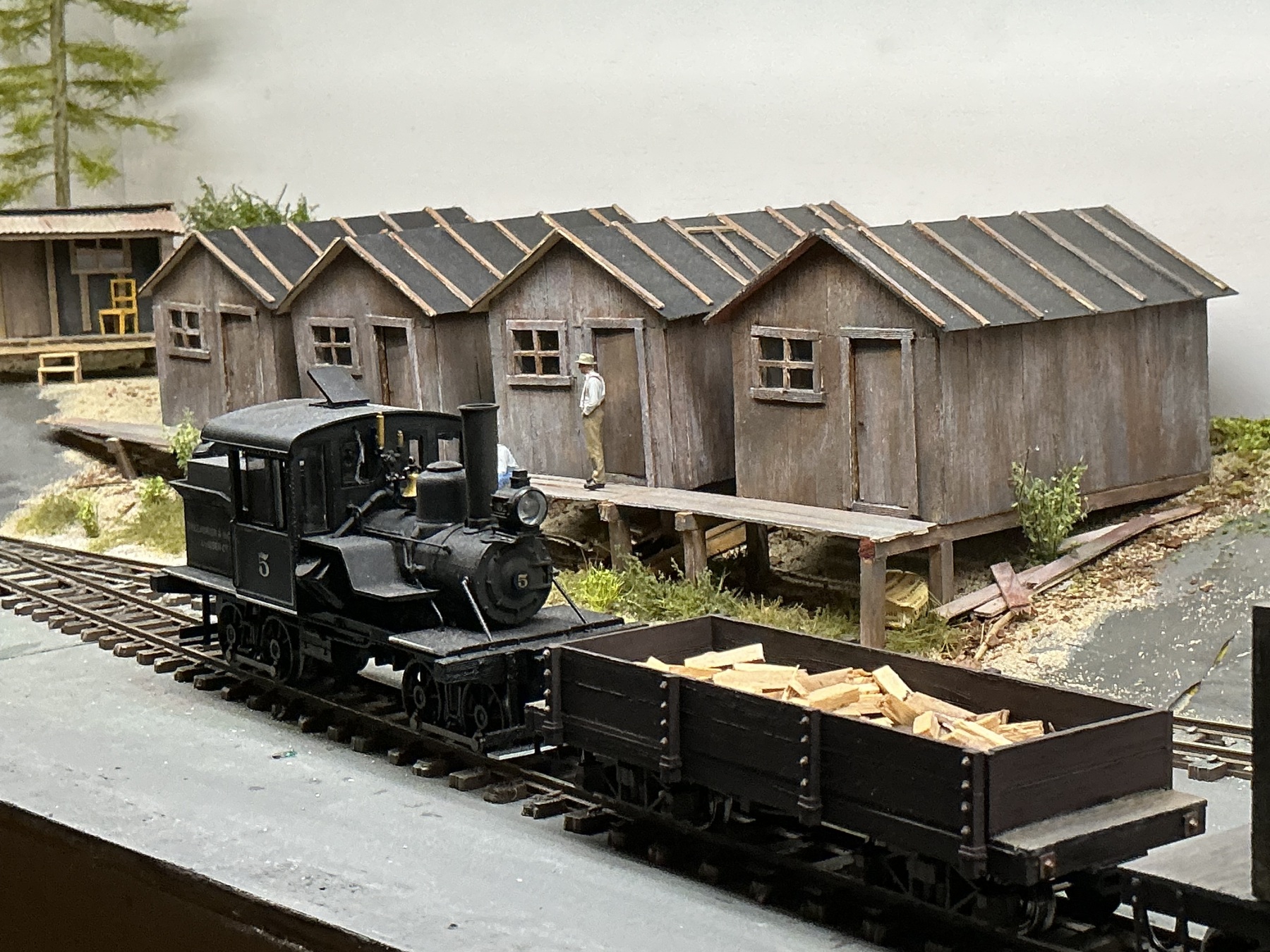 Hans, dank voor de link. Een mooi diorama, maar het is niet wat mij voor ogen staat. Camp 3 is in zijn nadagen. Weliswaar zijn de gevolgen van de houtkap zichtbaar, er slingert niet veel aan spullen (meer) rond. Als ik oude afbeeldingen bekijk zagen logging camps er (behalve alle stronken, takken en dergelijke) redelijk netjes uit. Ik denk dat mensen ook niet veel spullen hadden en er redelijk zuinig op waren. Ik ga dus toch voor een wat minder detailrijk gebeuren.