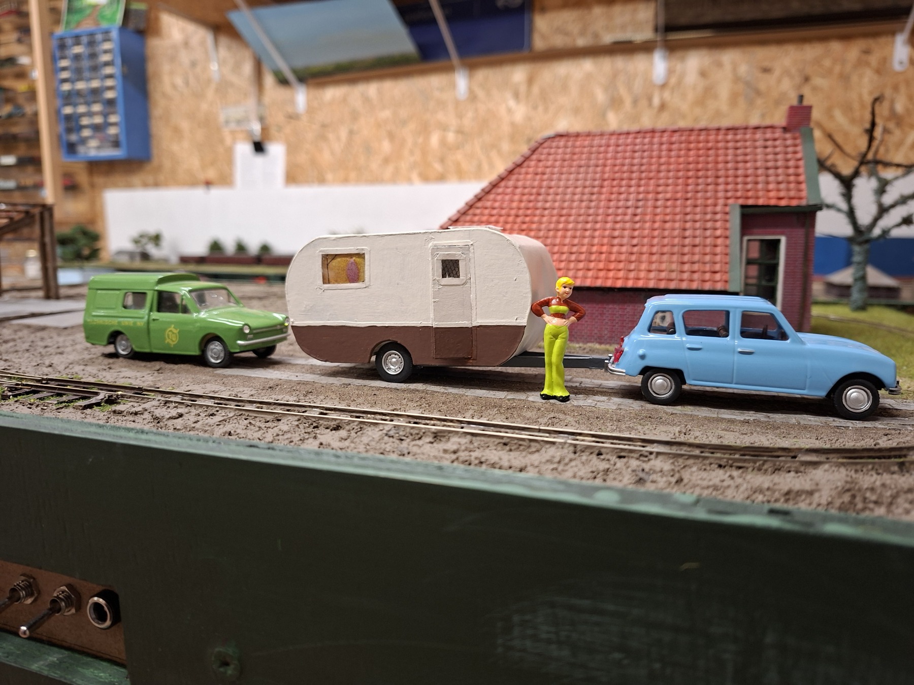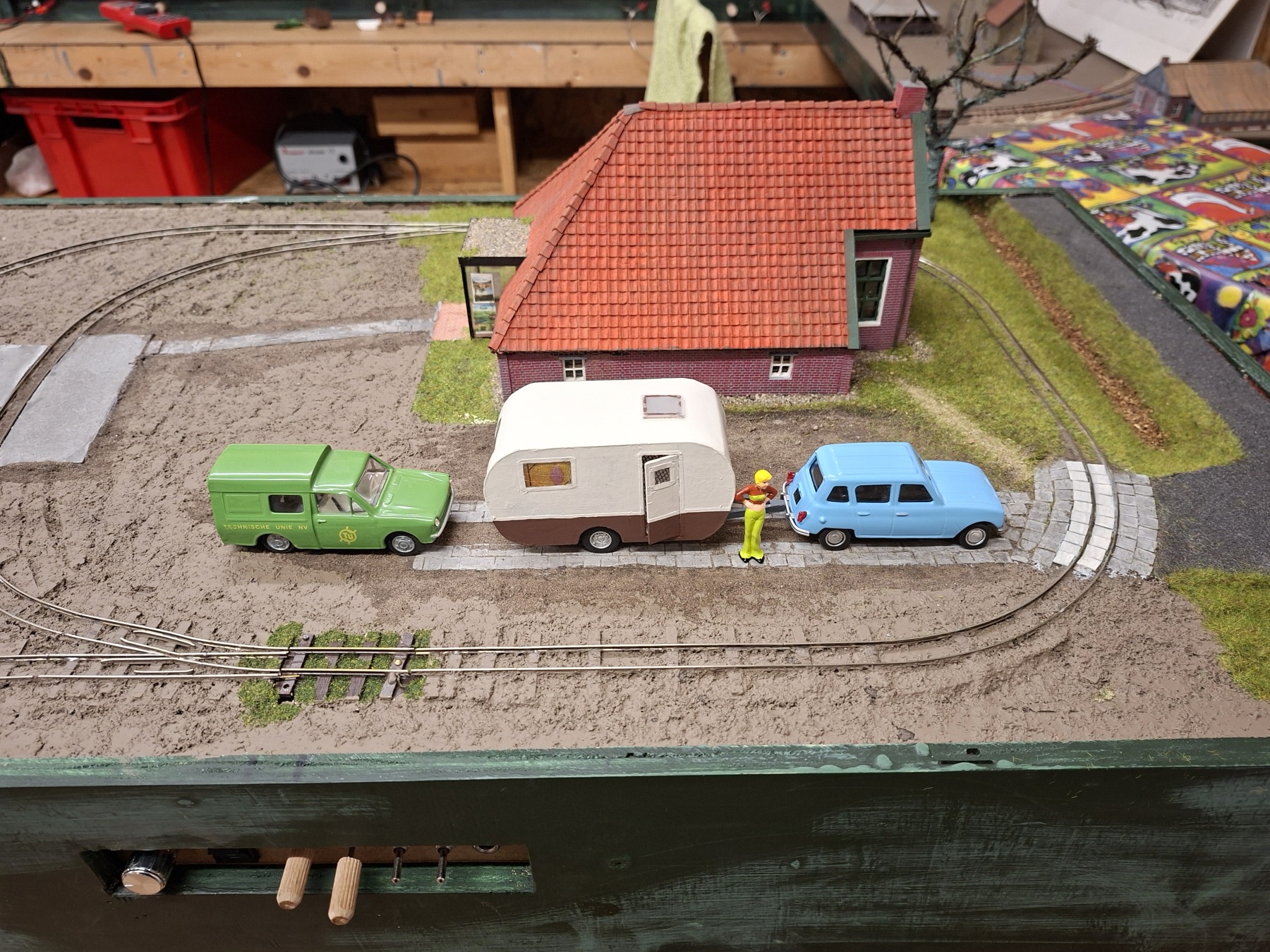 Ik had nog nooit een caravan gebouwd en op een oord als De Hasseberg mag een caravan niet ontbreken. Aan beide behoeften wordt dan nu voldaan. Een ´schiere poedie´ staat al in de caravan te wachten. En dan zitten er nog niet eens gordijntjes voor de ramen. Als dat maar goed gaat.