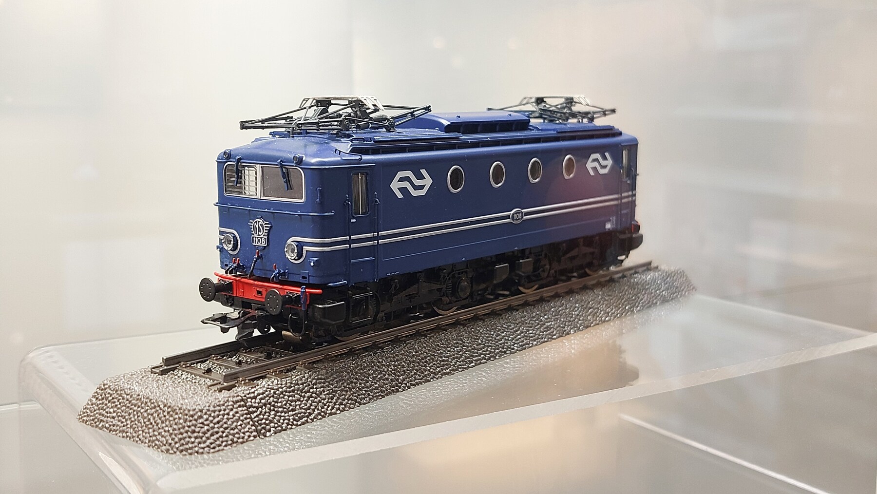 Het handmonster van de nieuwe 1100 van Märklin is dezer dagen te bewonderen bij Grootendorst in Woerden. Bovenstaand een foto van het model in de vitrine. Het belooft een prachtig model te worden! Vooral het feit dat ie van metaal is spreekt mij erg aan.