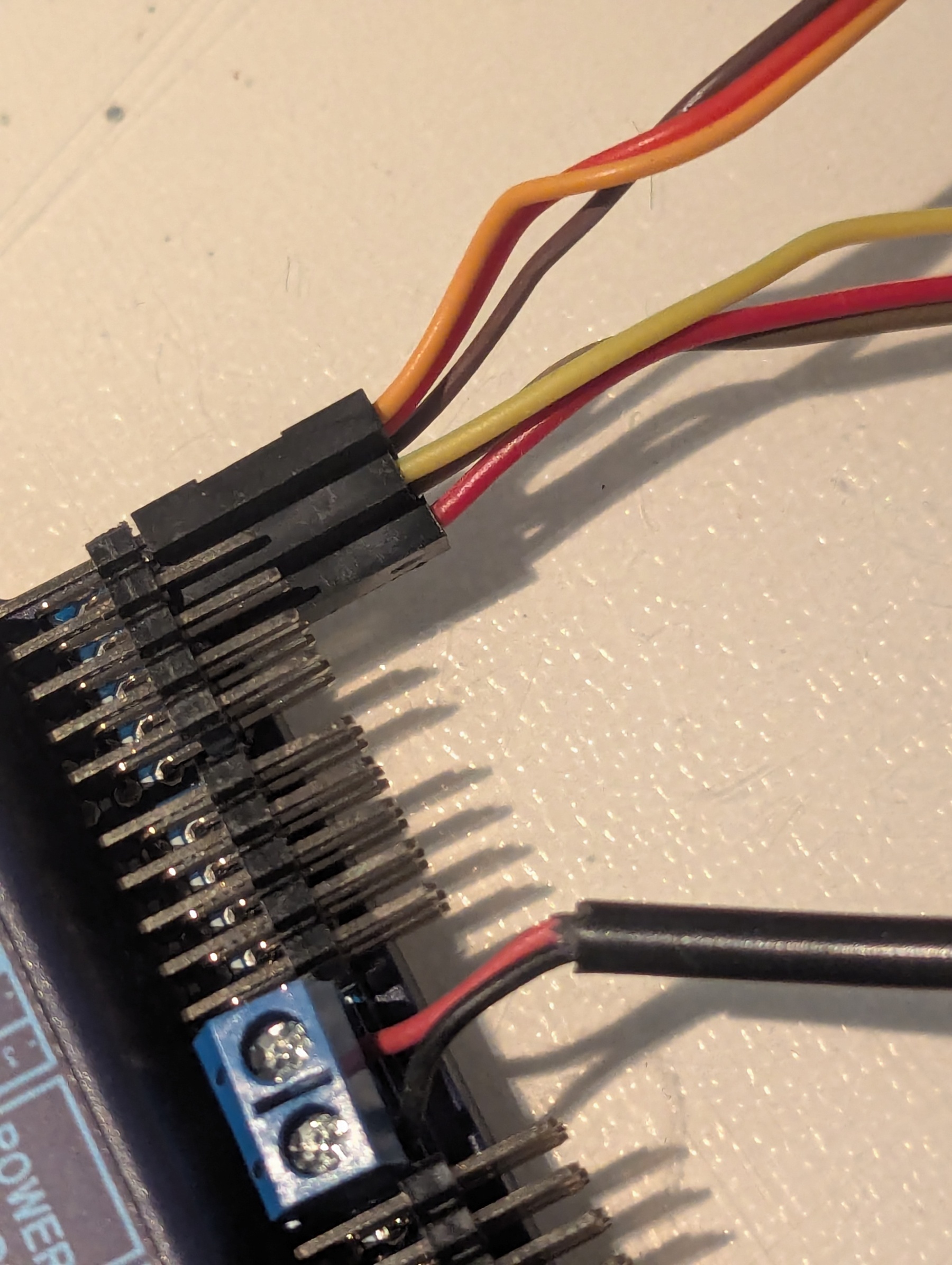 Inmiddels heb ik connectors gesoldeerd aan de lichtsluis en het geheel volgens de handleiding aangesloten op de YD 8248. Ook heb ik een van de servo's aangesloten. Daarna heb ik het geheel geprobeerd te programmeren volgens de aanwijzingen van de handleiding, maar tot nu toe nog zonder succes. Ik heb een aantal foto's gemaakt van hoe het er nu uit ziet. Kan iemand mij uit de brand helpen..